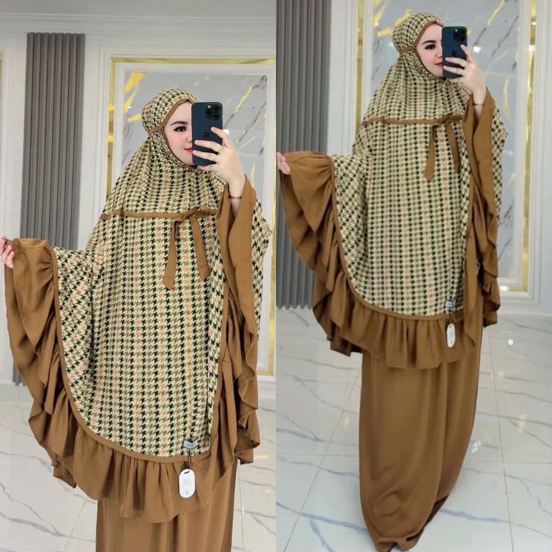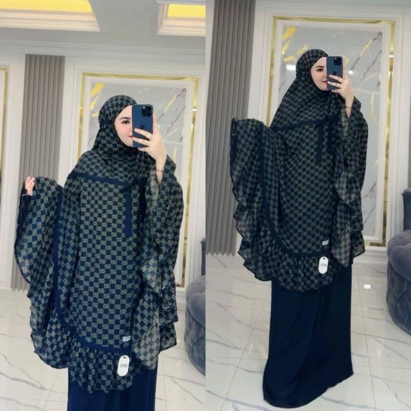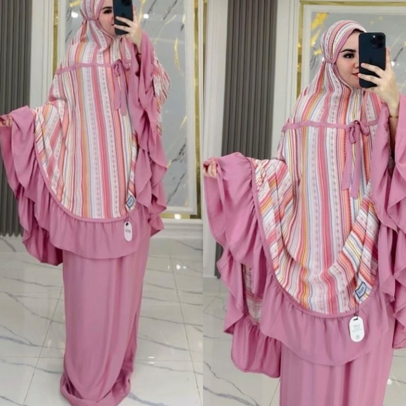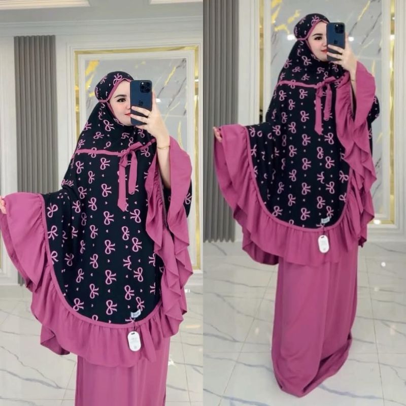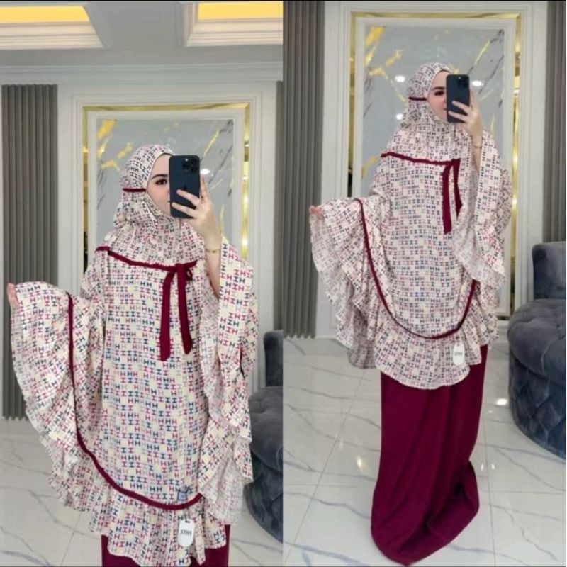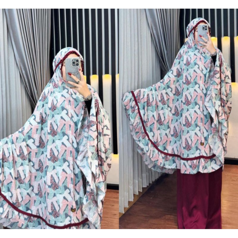 Mukena Viral Rayon Motif Twill Premium Resleting Pita