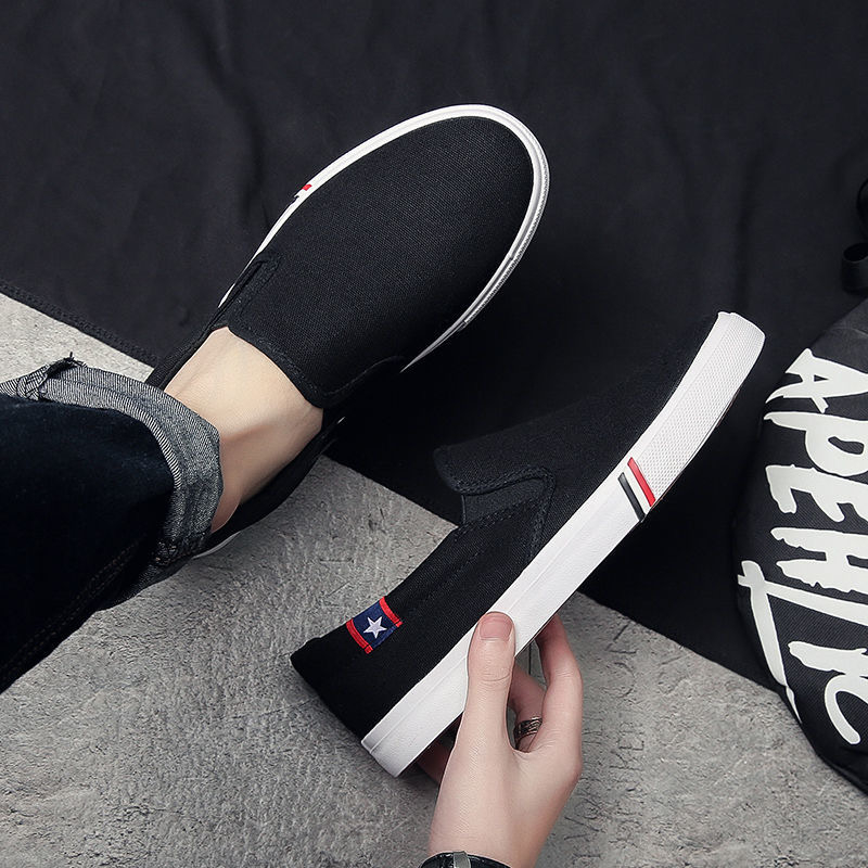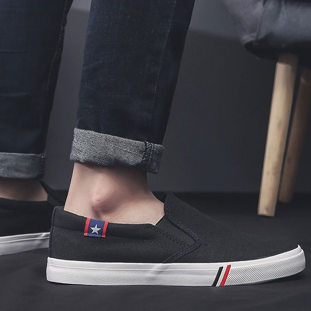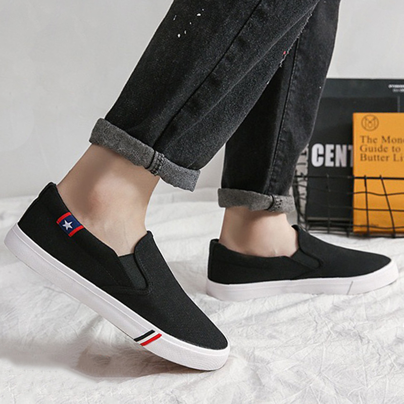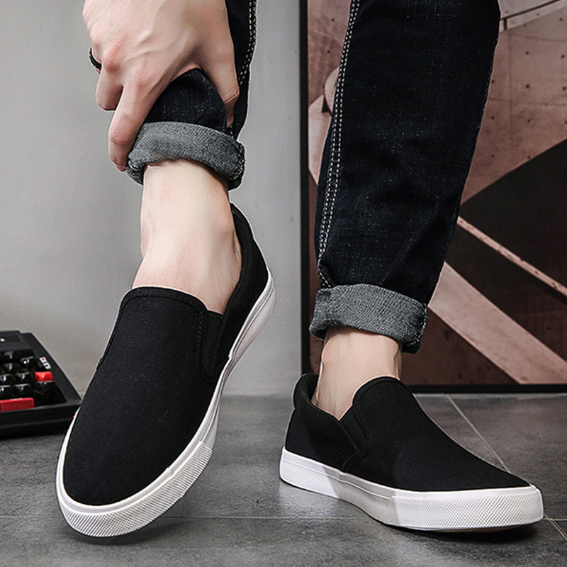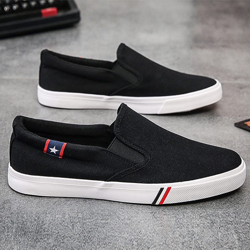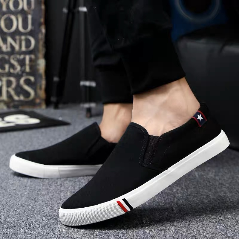 Highland Sepatu Slip On Pria Casual Sepatu Santai Kanvas Sepatu Slip on Hitam Polos Sepatu Slop Unisex KSC406