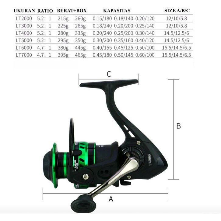 REEL PANCING YUMOSHI BARU LT2000-7000 SPOOL METAL 14 SERIES BANYAK WARNA