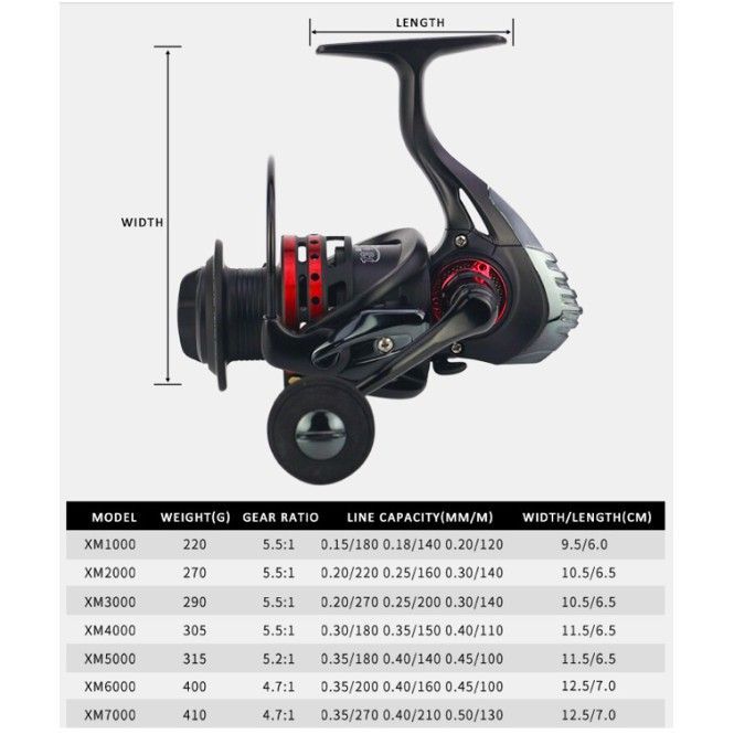 REEL POWER HANDLE REELSKING XM1000-7000 SPOOL BESI DOUBLE SPOOL 13+1BB
