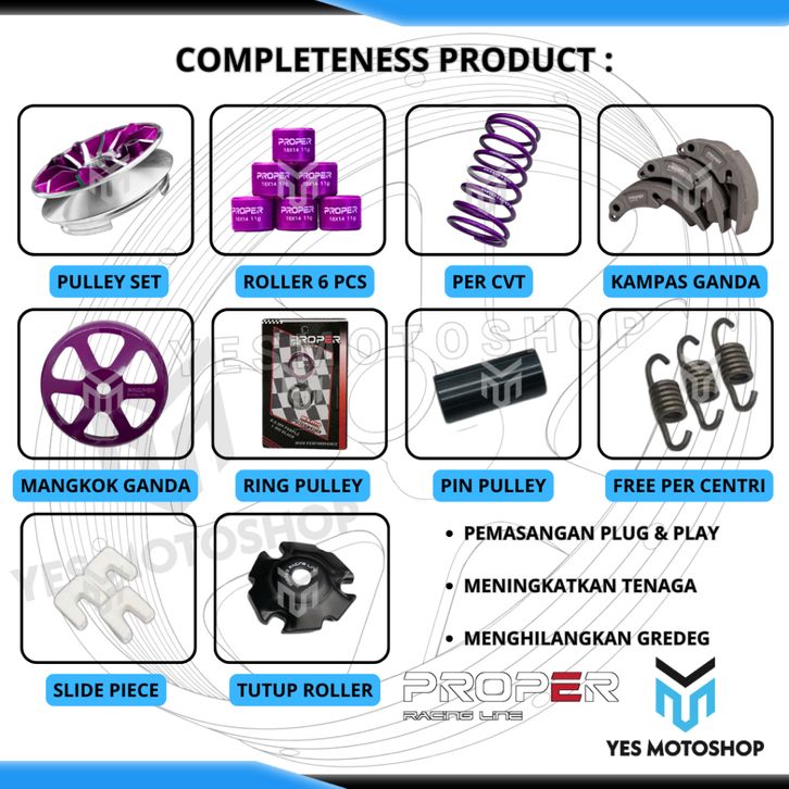 Paket Kirian Paket Upgrade CVT Proper Racing Line NMAX Aerox Lexi Pulley Set Mangkok Kampas Ganda Roller Per CVT