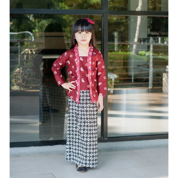 Kebaya Anak Kutubaru Panjang Jumputan Warna Lengkap
