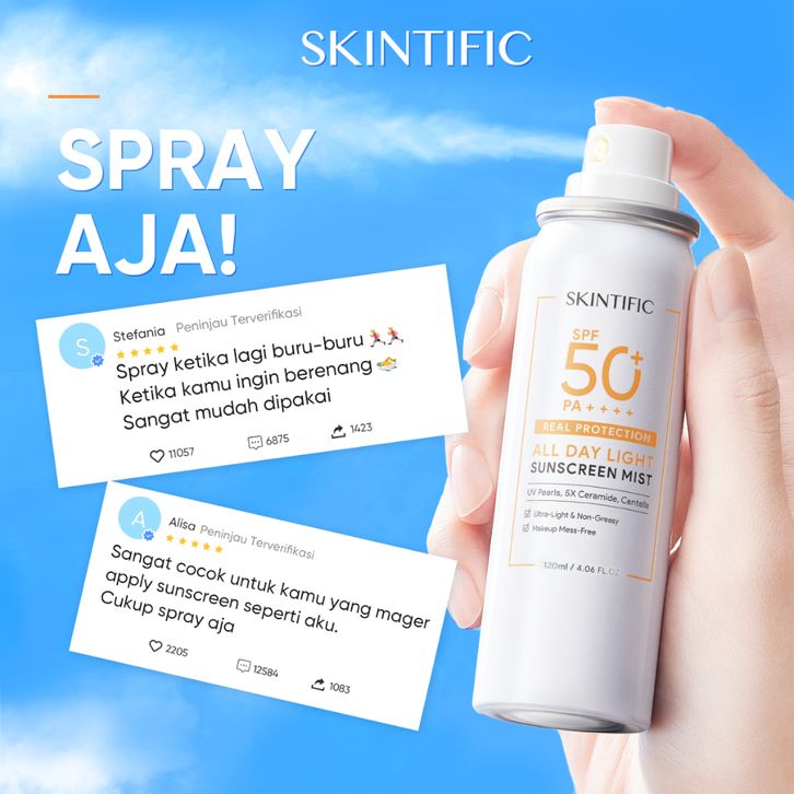 Official StoreSKINTIFIC All Day Light Sunscreen Spray SPF50 PA++++ Sunscreen Mist Anti UV UVA UVB 120mili/Body Sunscree