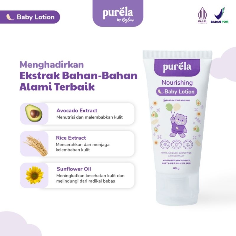 PURELA Nourishing Baby Lotion 60 gr - Lotion Bayi Untuk Mencerahkan Kulit - Bahan Alami dan Organik