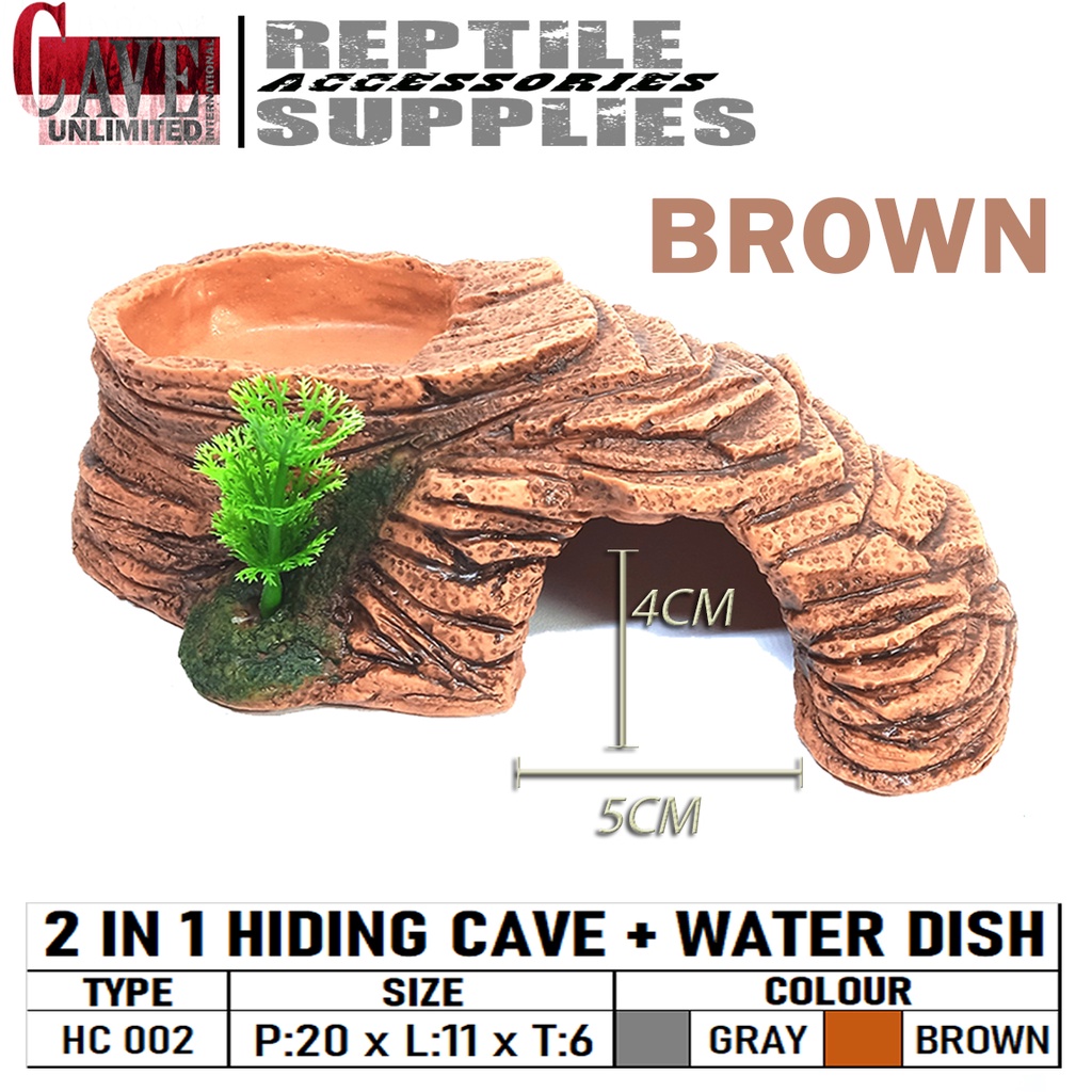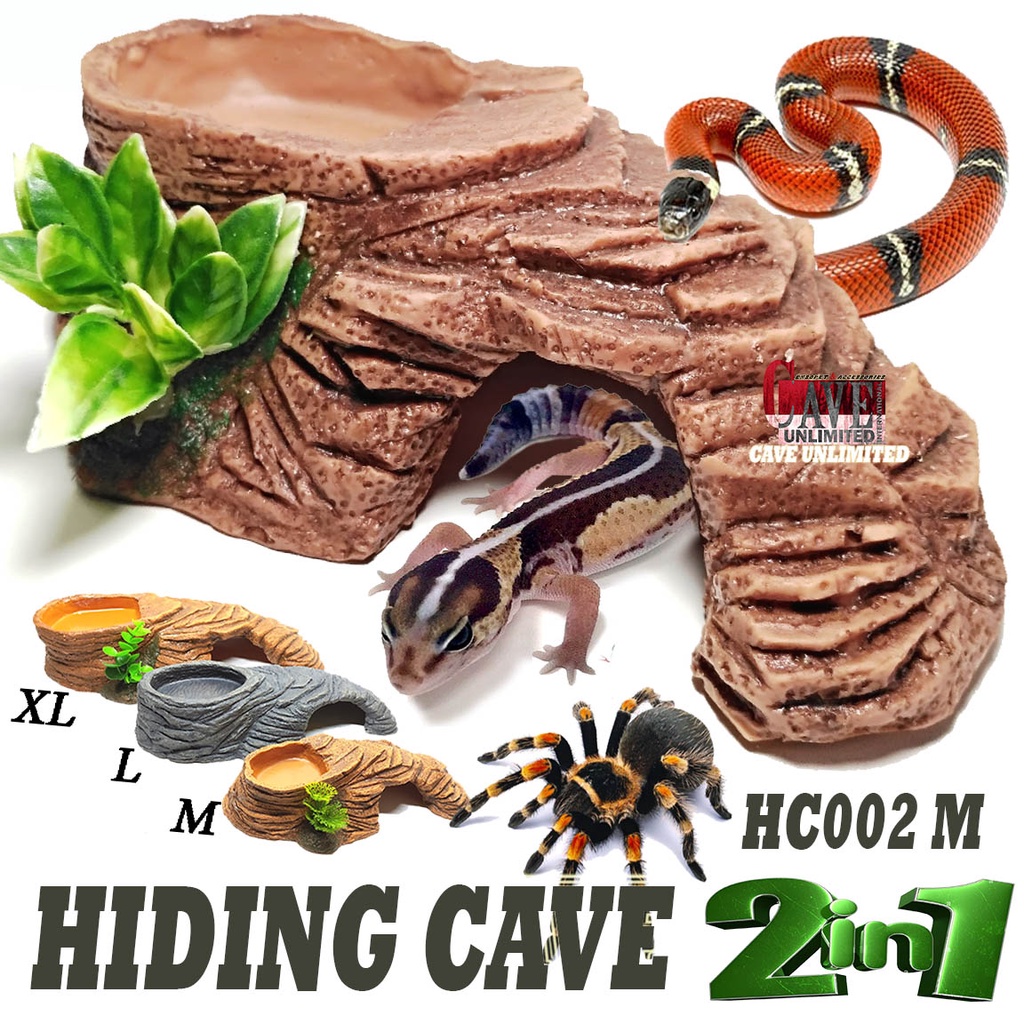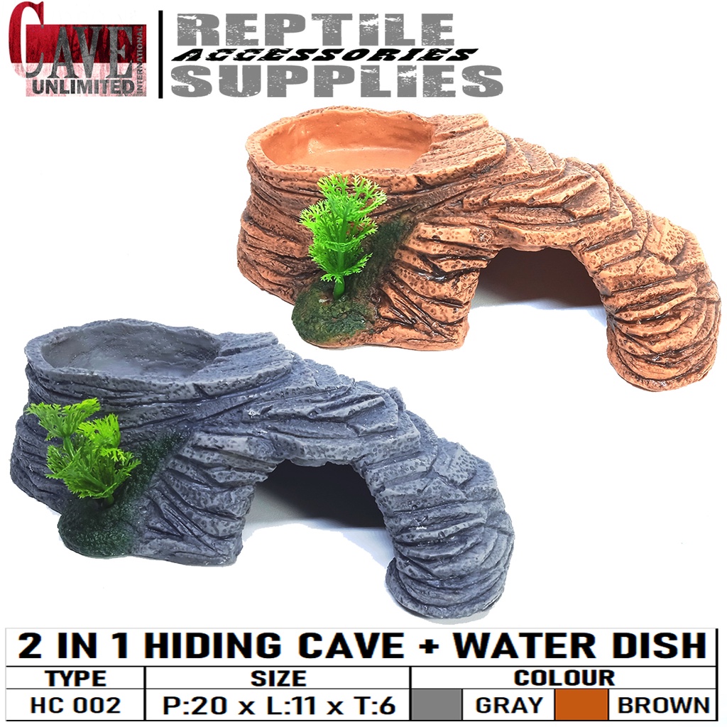 (FLASH SALE)HC002M HDING CAVE 3IN1 HIDINGCAVE+WATERDISH+BASKING SPOT GOA BERSEMBUNYI TEMPAT BERJEMUR DAN WADAH AIR