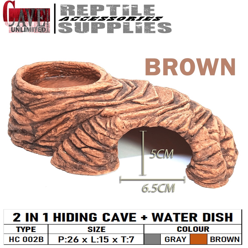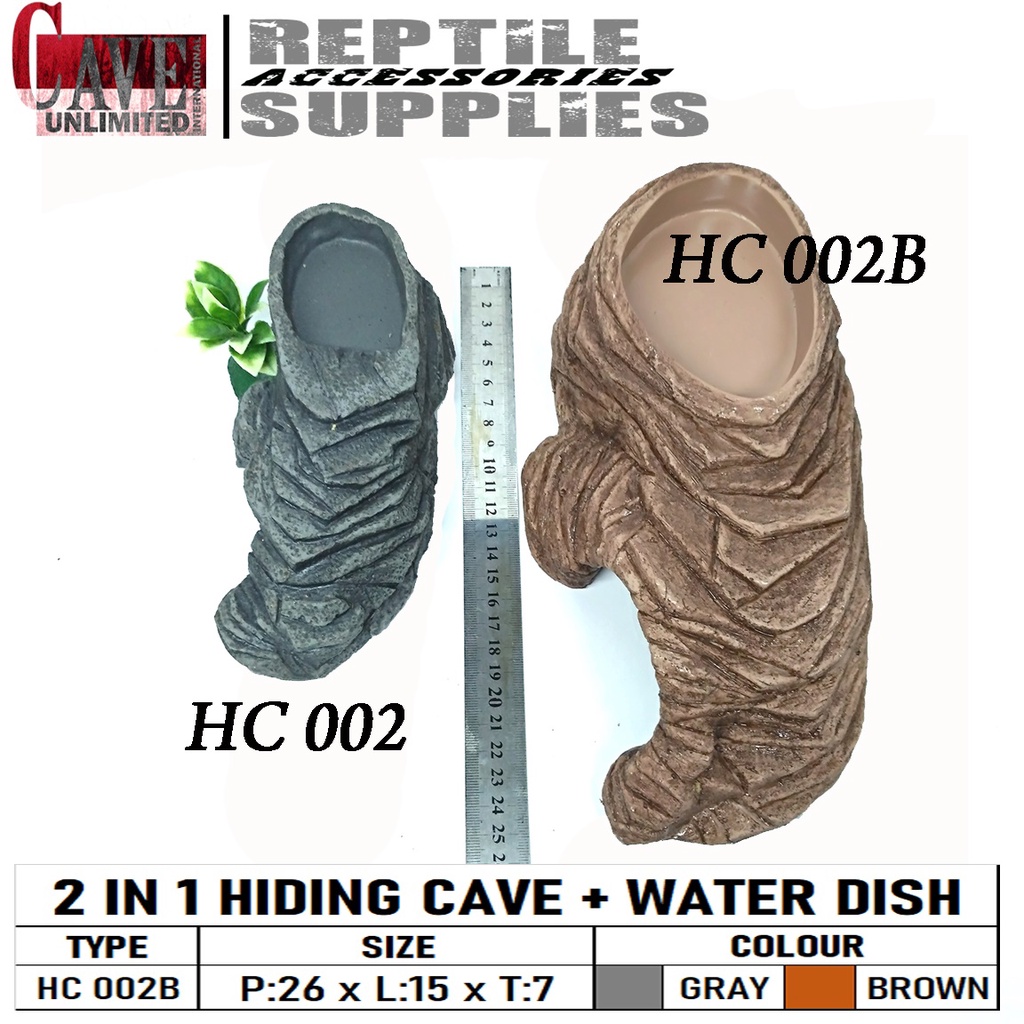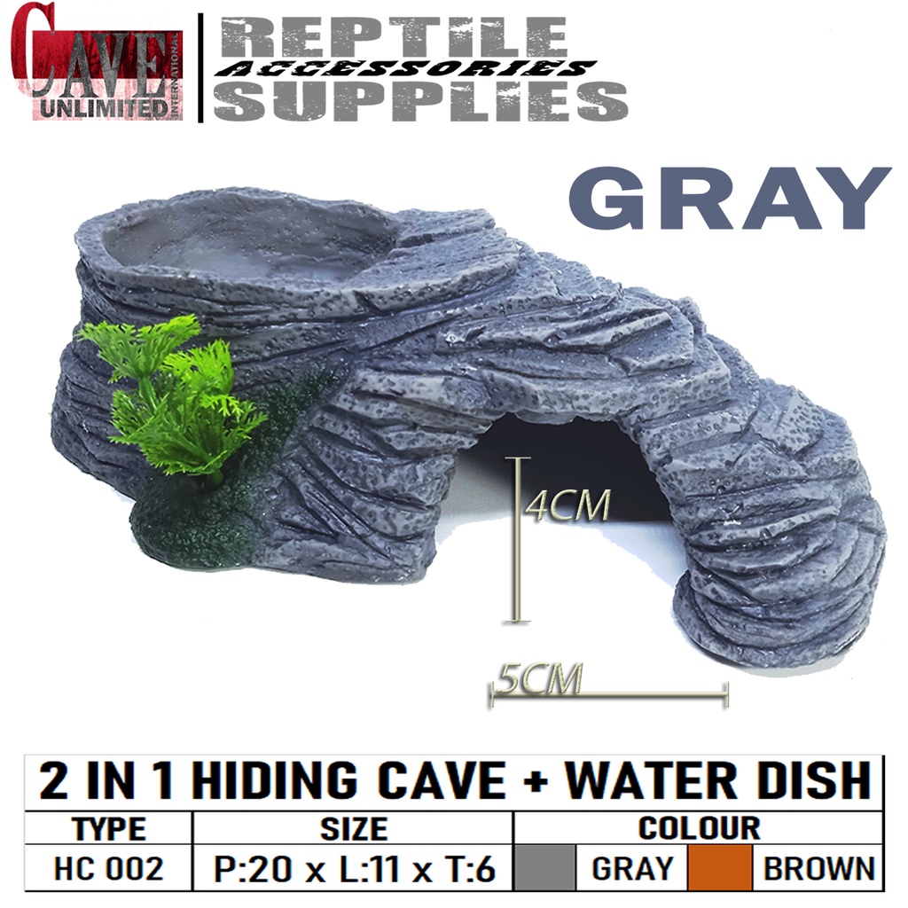 (FLASH SALE)HC002M HDING CAVE 3IN1 HIDINGCAVE+WATERDISH+BASKING SPOT GOA BERSEMBUNYI TEMPAT BERJEMUR DAN WADAH AIR