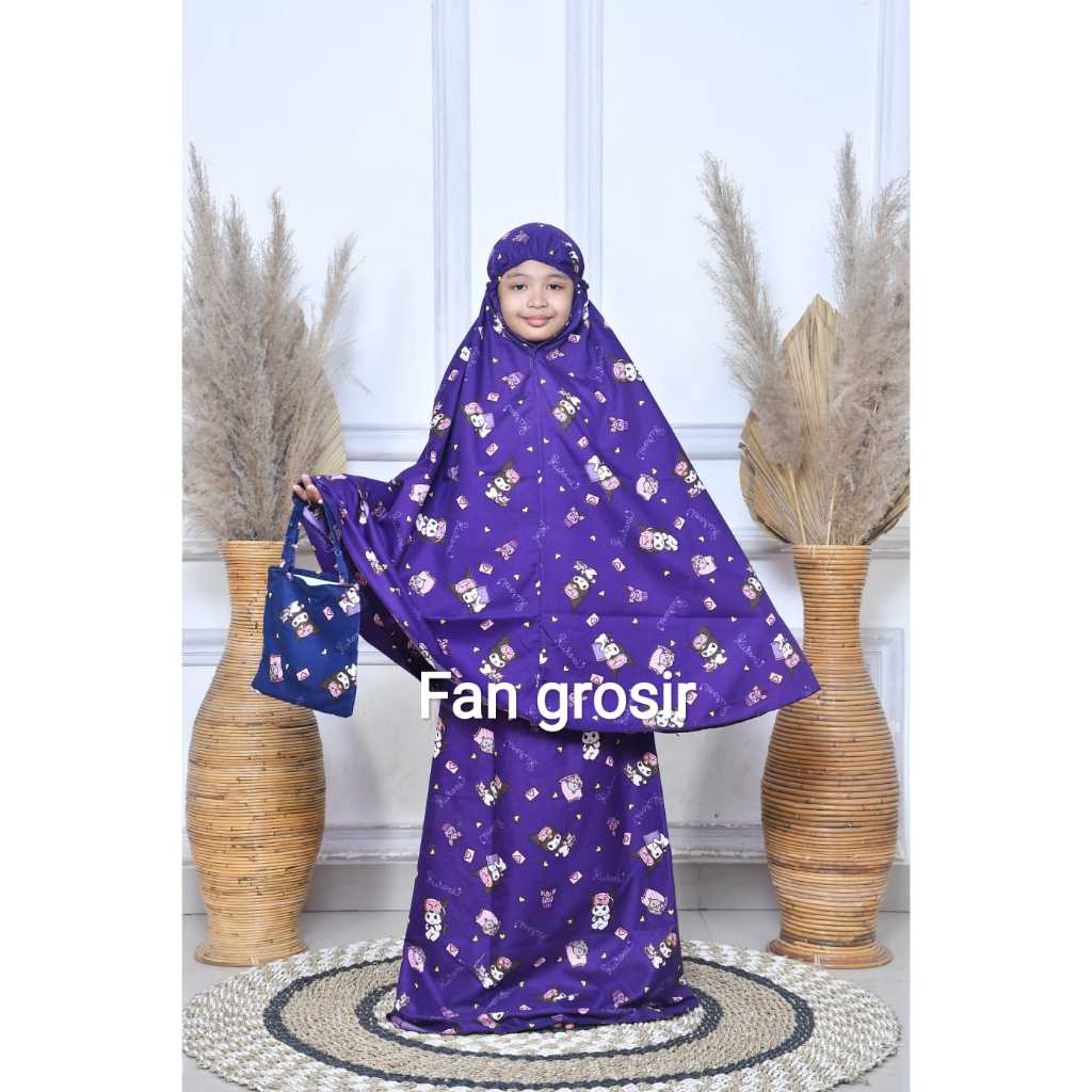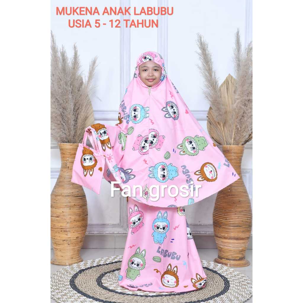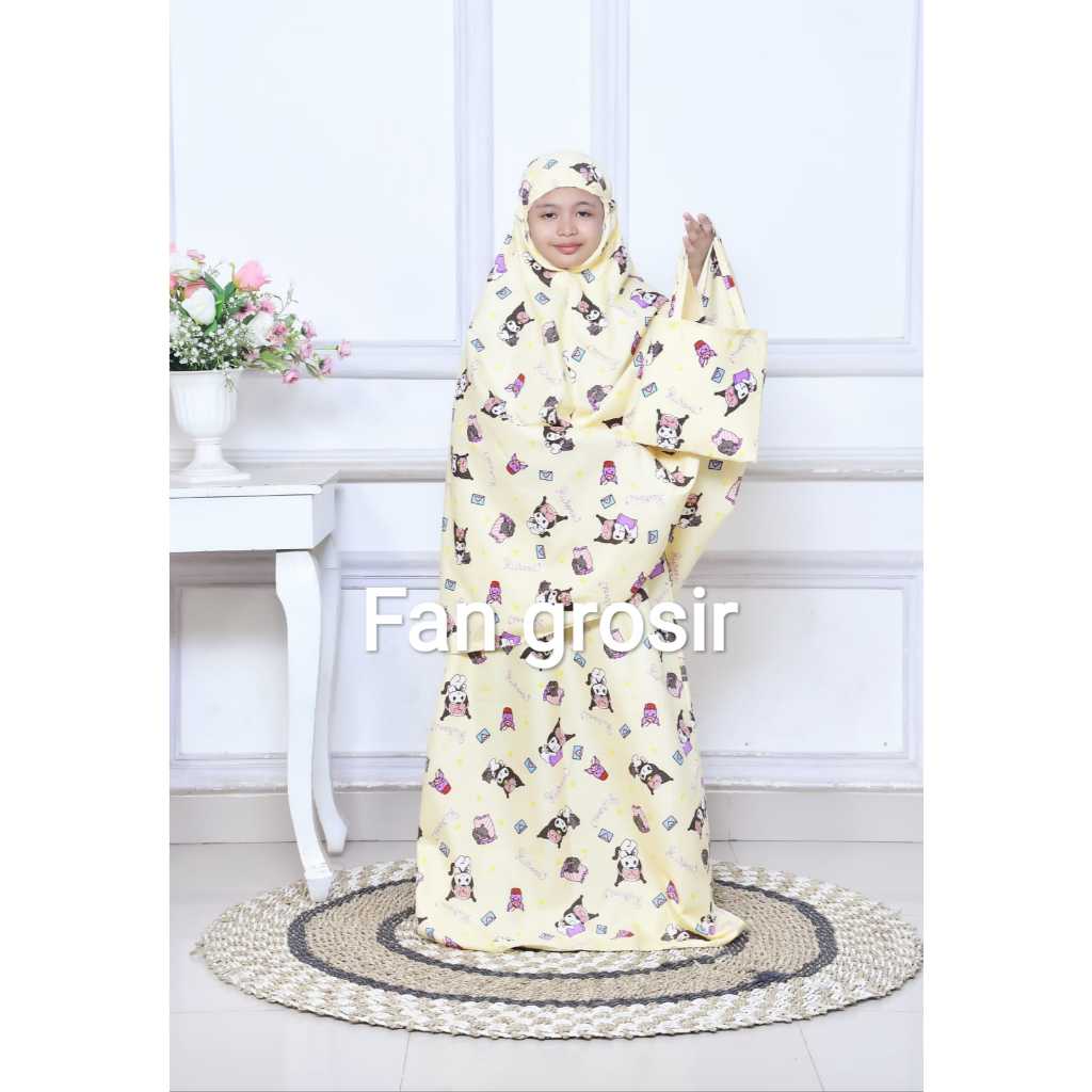 MUKENA ANAK VIRAL MOTIF LABUBU / KUROMI USIA 5 - 12 TAHUN BAHAN COTTON POLYMICRO FREE TAS