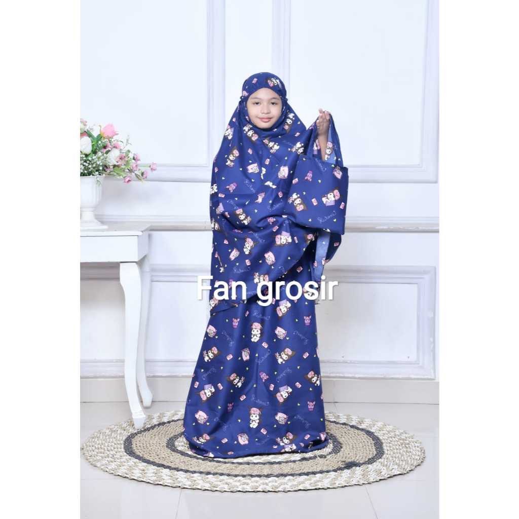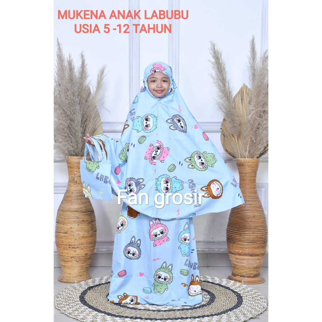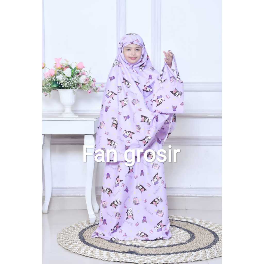 MUKENA ANAK VIRAL MOTIF LABUBU / KUROMI USIA 5 - 12 TAHUN BAHAN COTTON POLYMICRO FREE TAS