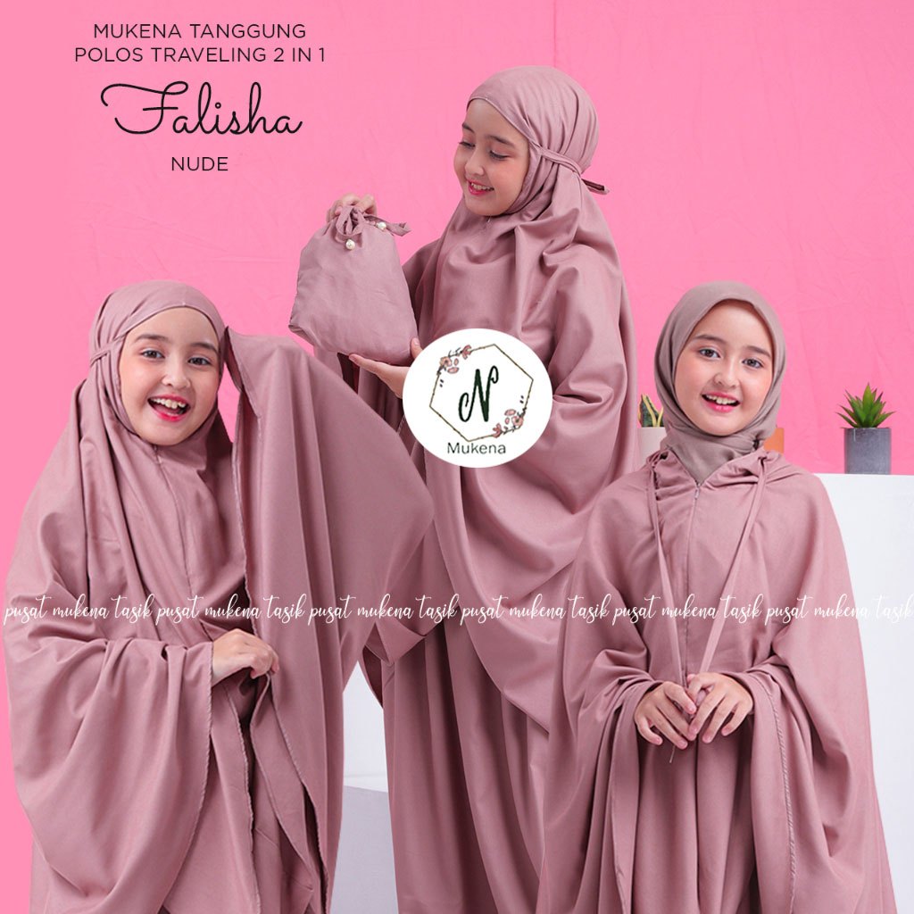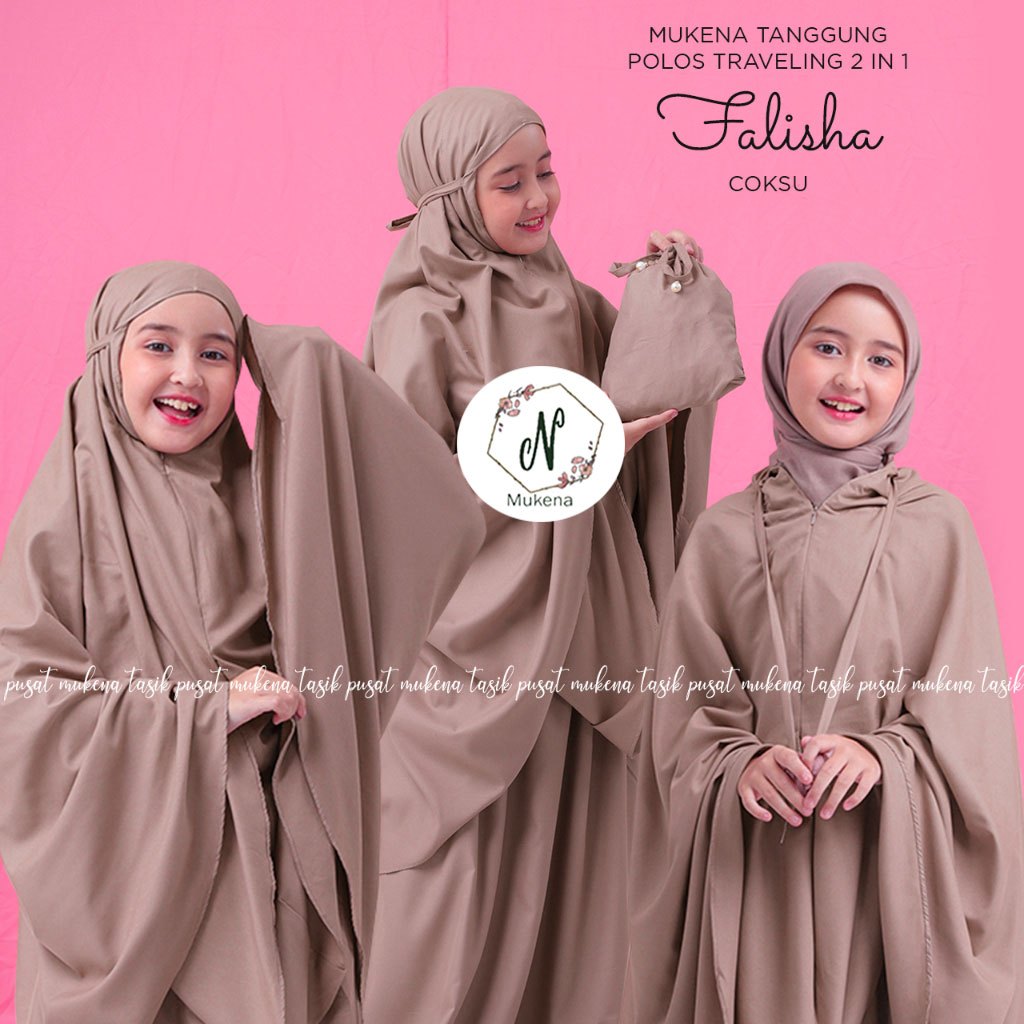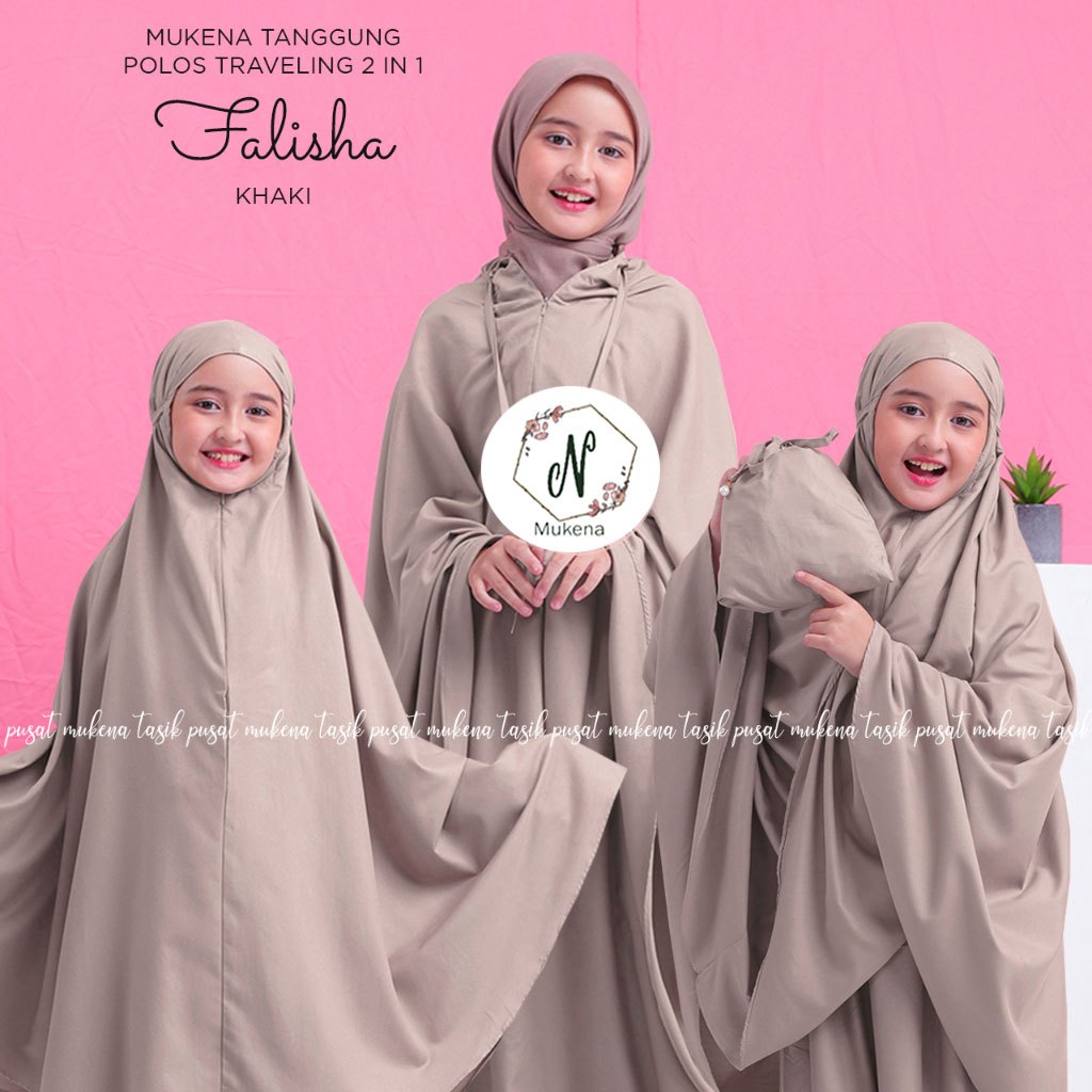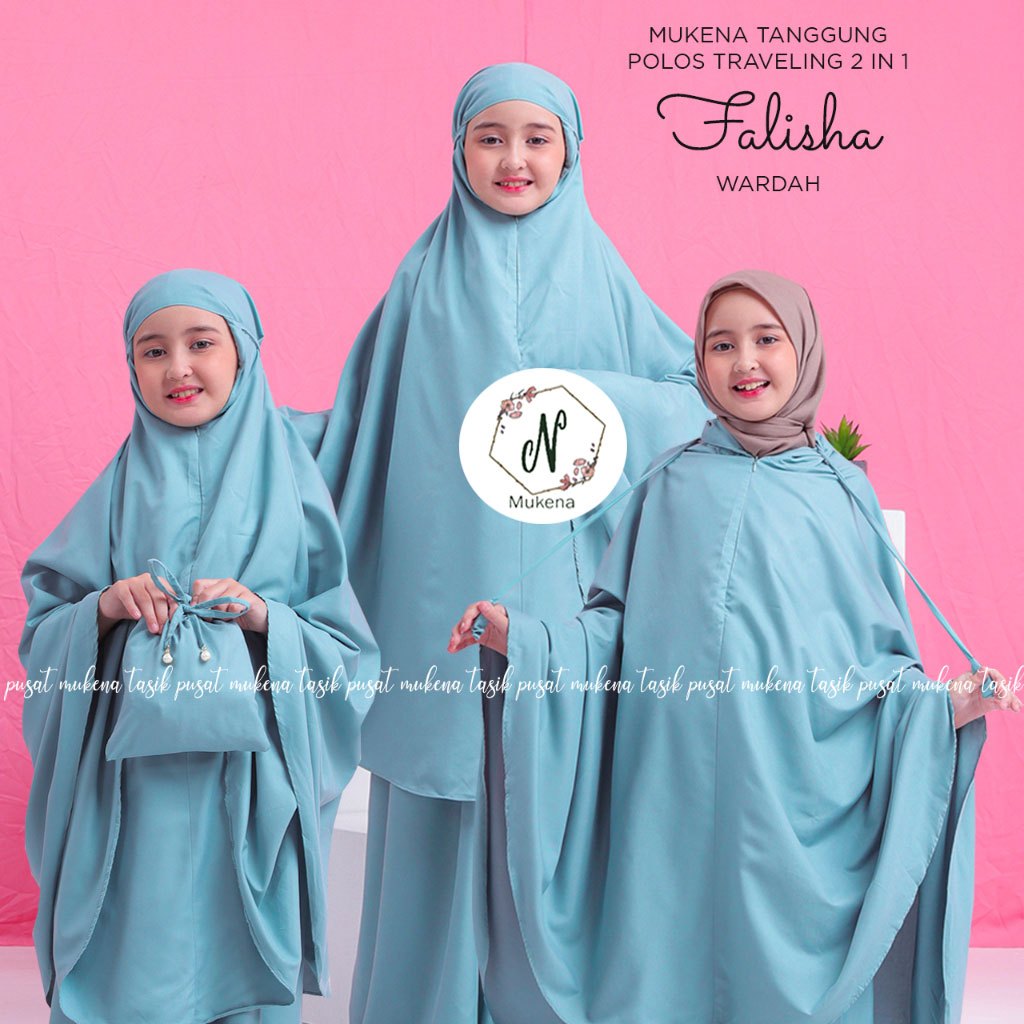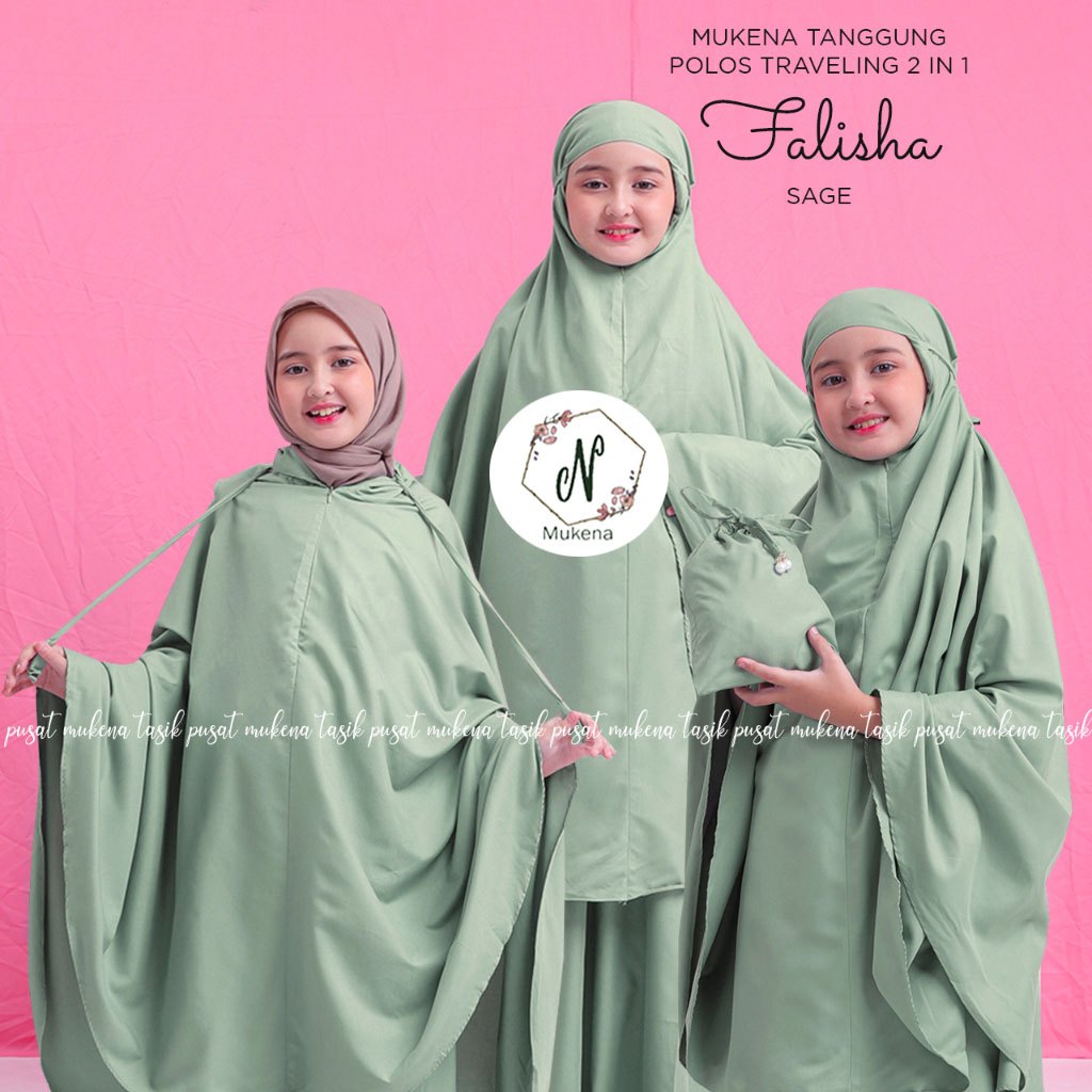 PREMIUM - MUKENA ANAK TANGGUNG TRAVELING POLOS FALISHA 2 IN 1 RESLETING KATUN - mukena anak tanggung