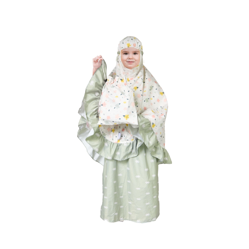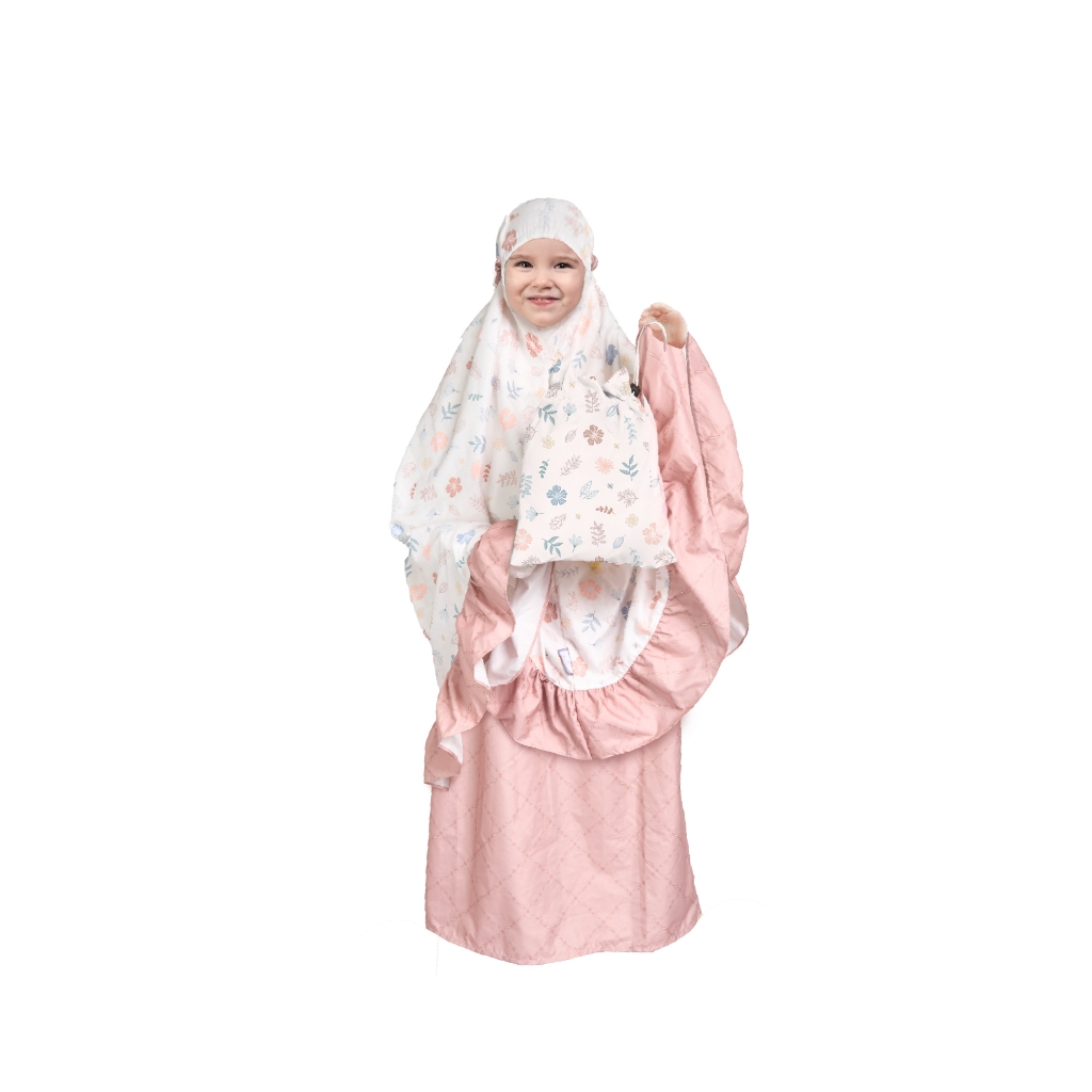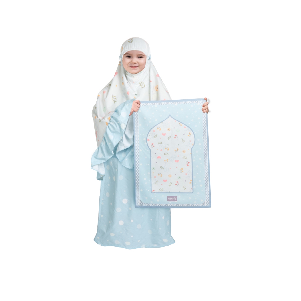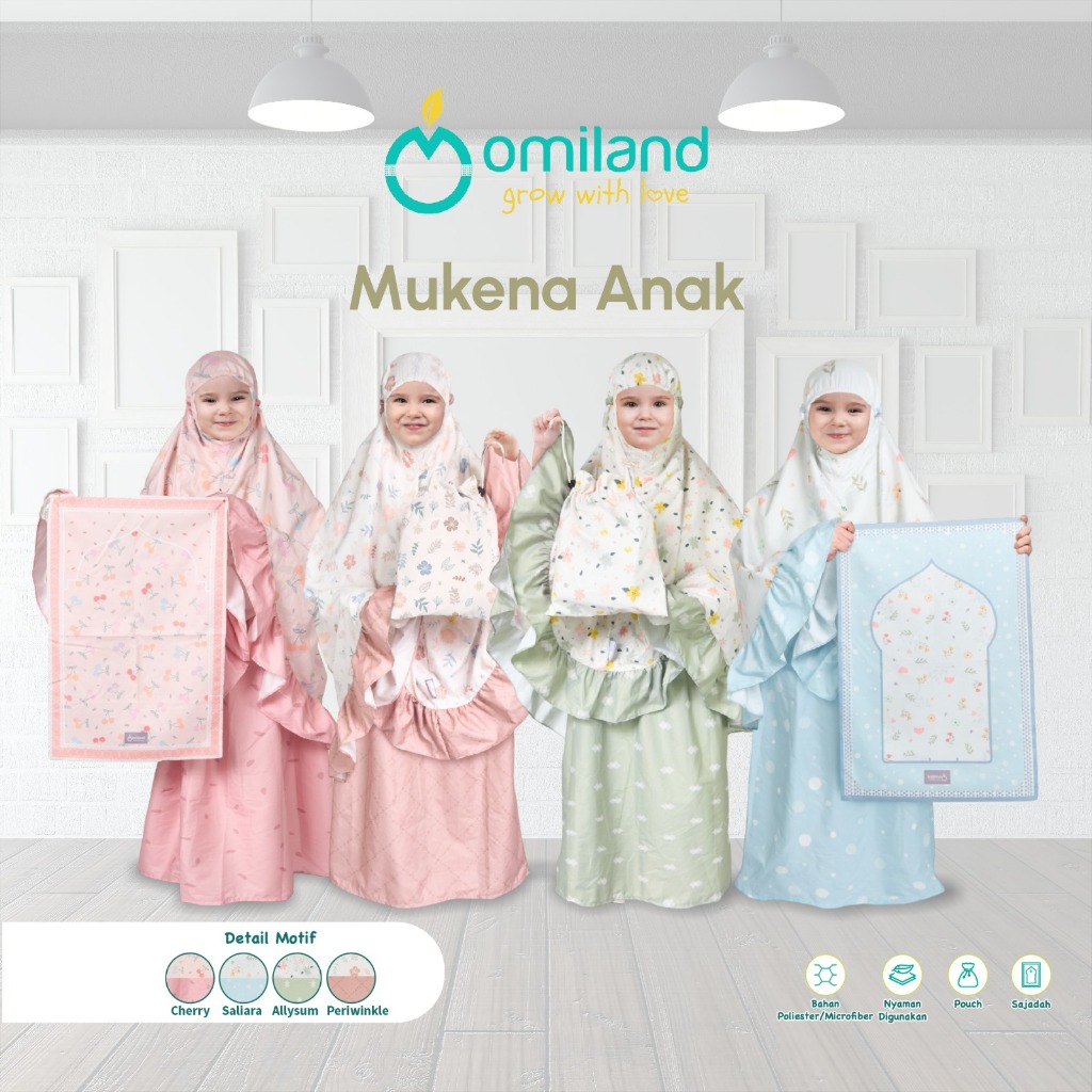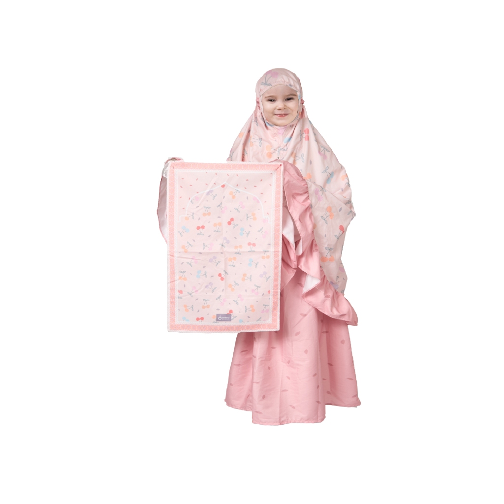 Mukena Anak + Sajadah Anak Travelling Free Pouch Motif Cherry Periwingkle Saliara Allysum Omiland
