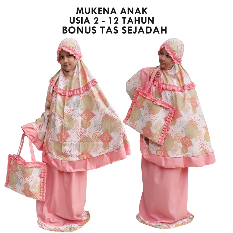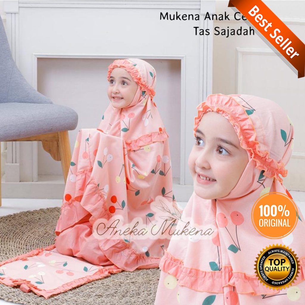 Mukena Anak Karakter Adem PG TK SD 2 3 4 5 6 7 8 9 10 11 12 13 Tahun Motif Ceri Cantik Bahan Katun Model Sajadah Lucu