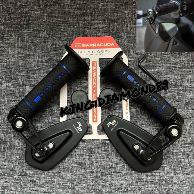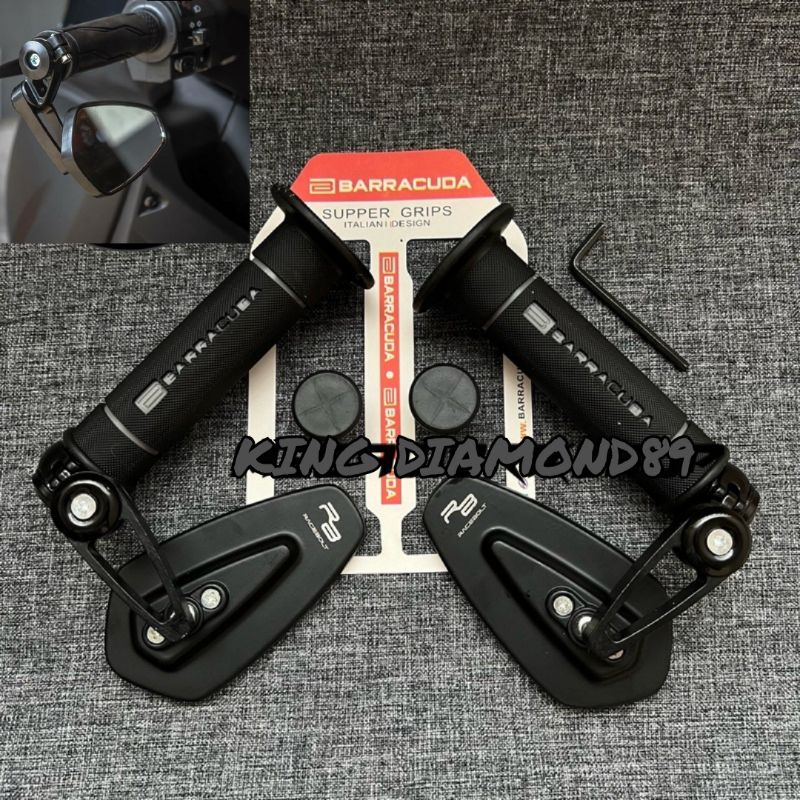 Paket Hemat 2in1 Handgrip Sarung Gas Barruda Model RCB Ring Boy HG.55 + Spion Jalu Oval Bar End Cocok semua motor Univer