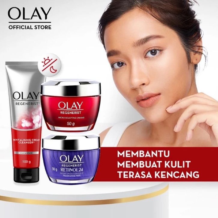 Olay Regenerist Set Lengkap Sabun Cuci Muka Cleanser & Pelembab Pagi & Retinol 24 Pelembab Malam Krim Moisturizer Anti