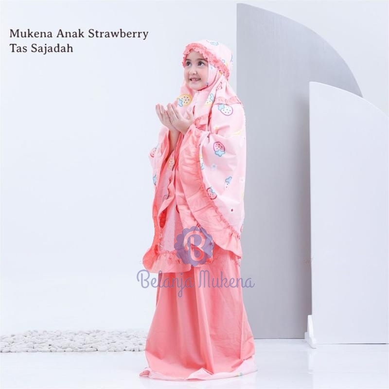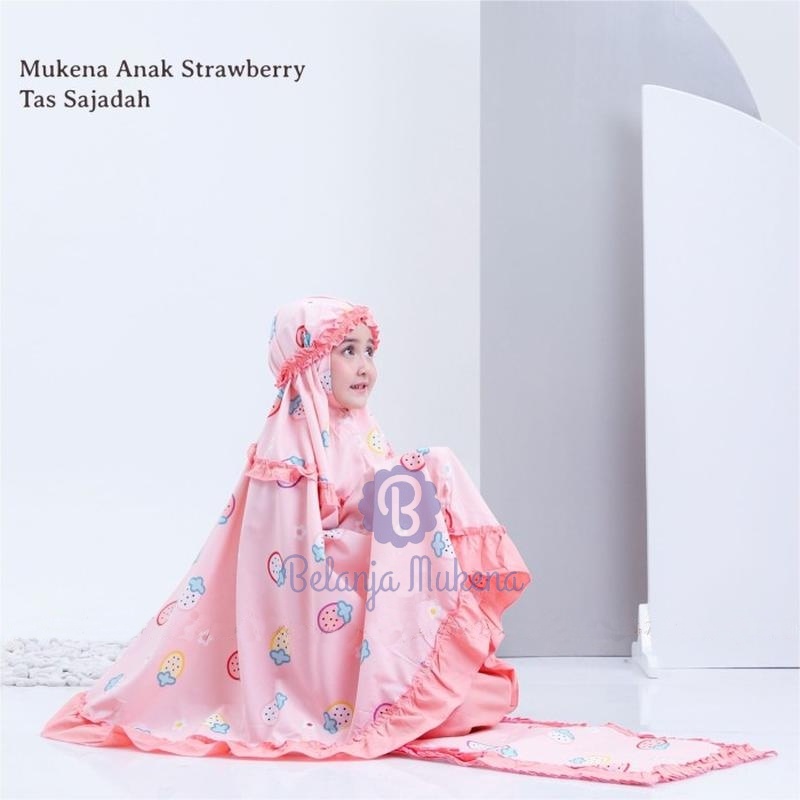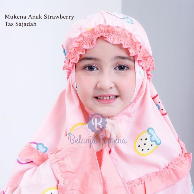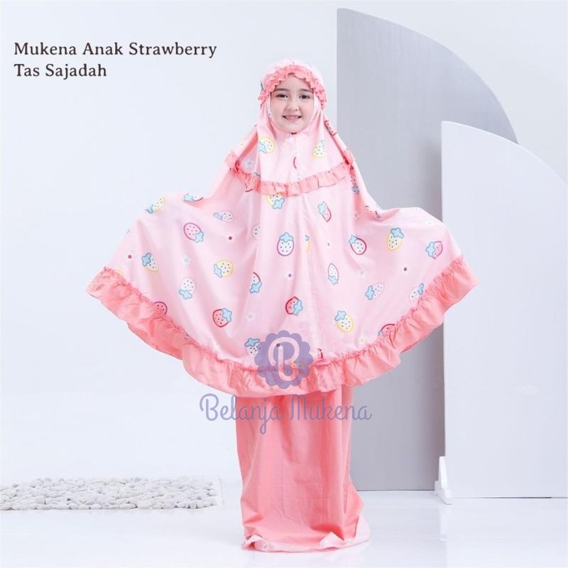 Mukena Anak Karakter Umur 2 3 4 5 6 7 8 9 10 11 12 Tahun Set Sajadah Strawberry Mukenah Anak Bayi Motif Stroberi Lucu Mu