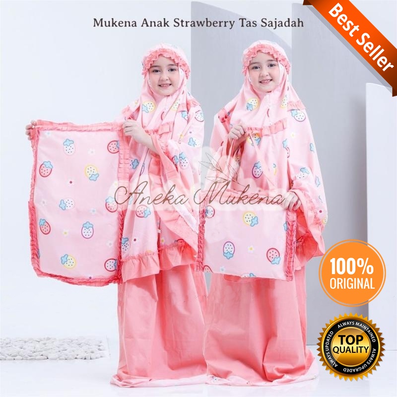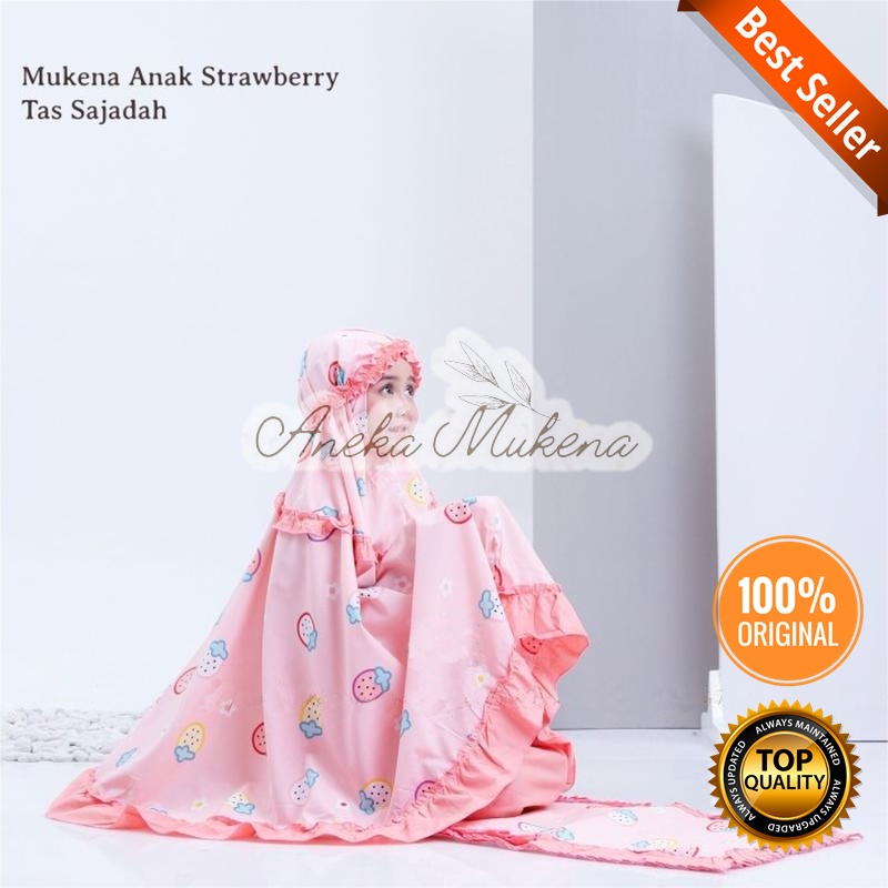 Mukena Anak Usia 2 3 4 5 6 7 8 9 10 11 12 Tahun Set Sajadah Mukenah Anak Bayi Karakter Strawberry Lucu Mukena Anak Balit