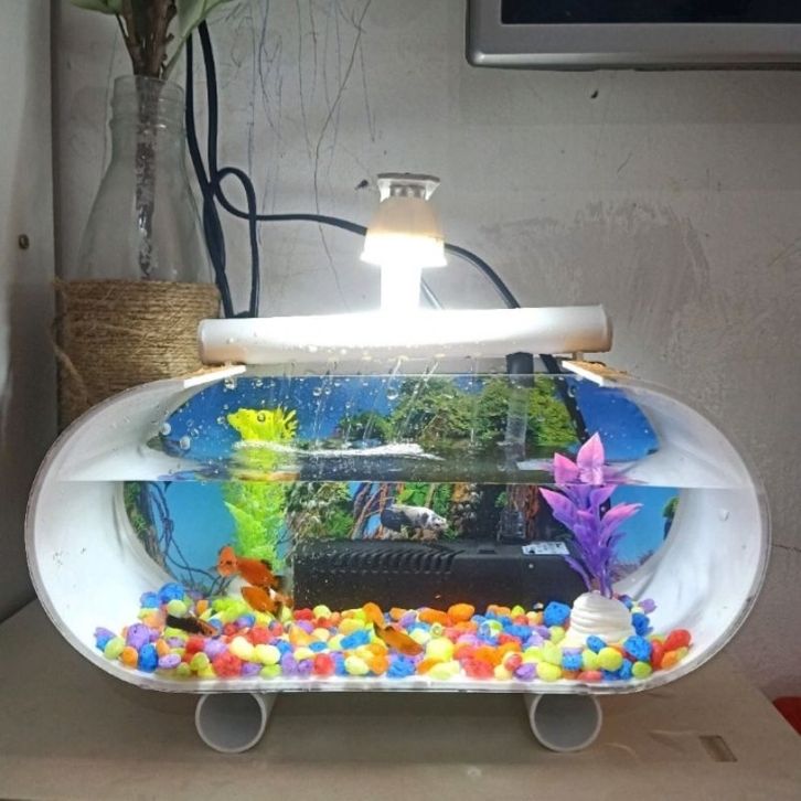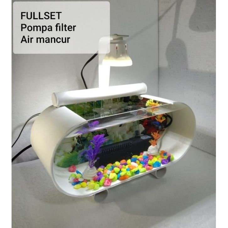 AQUARIUM MINI AKRILIK PVC IKAN HIAS/IKAN CUPANG FULLSET LAMPU LED POMPA FILTER AIR MANCUR/AQUARIUM MINI/AQUARIUM