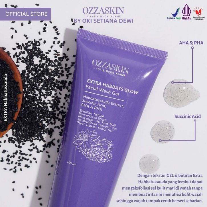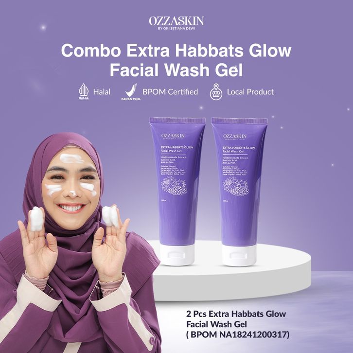 Ozzaskin Official By Oki Setiana Dewi - Mengurangi Pori-pori Basic Skincare - Combo Extra Habbats Glow Facial Wash Gel