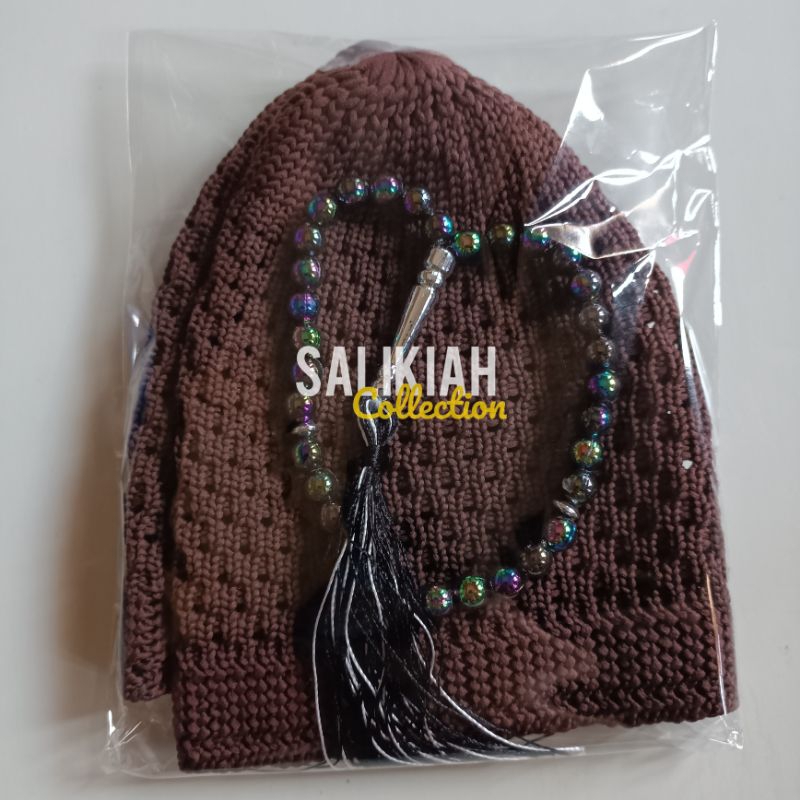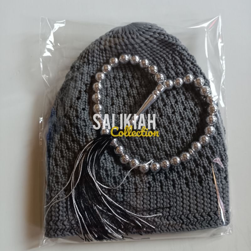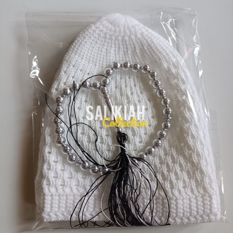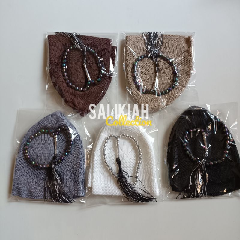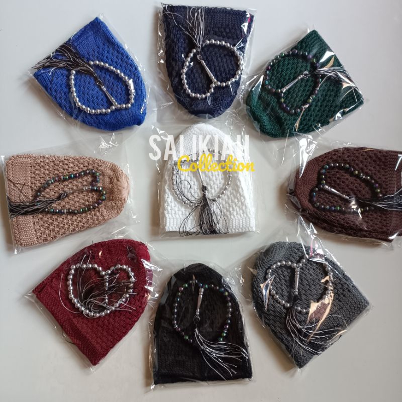 ( 20pcs ) Oleh-Oleh Haji Umrah / Peci Rajut Dewasa dan Tasbih Mutiara 33butir