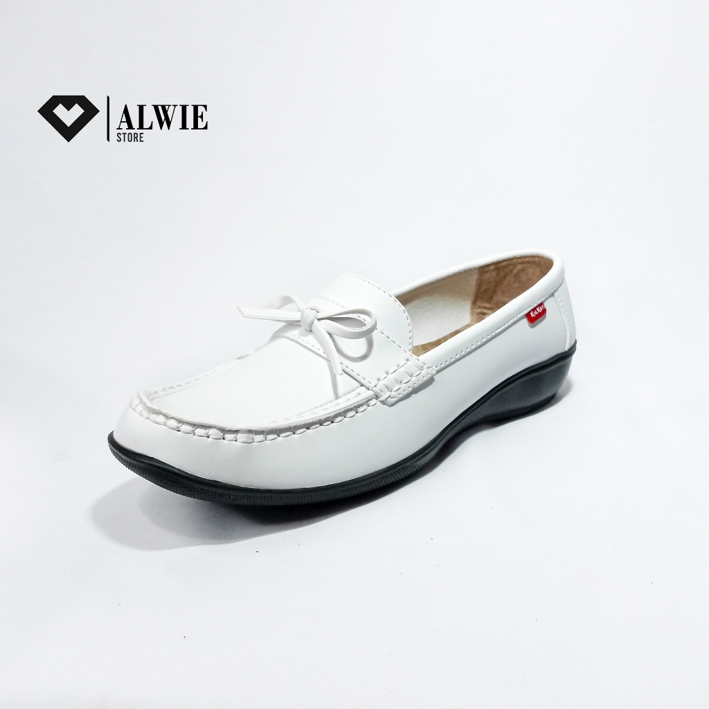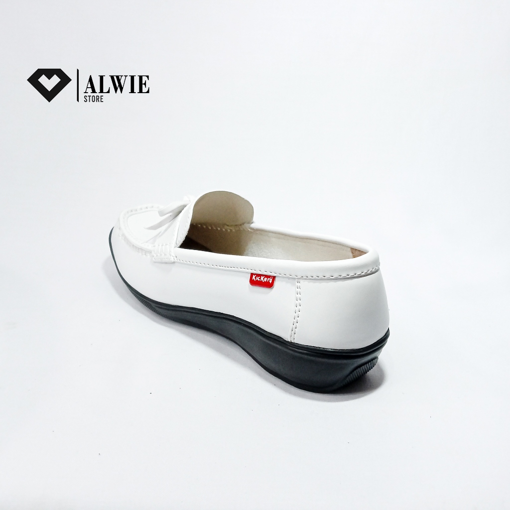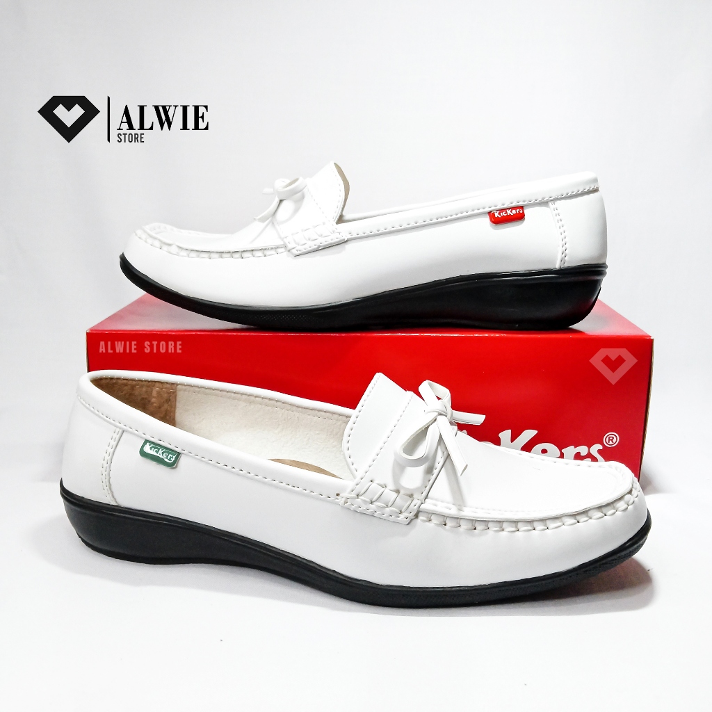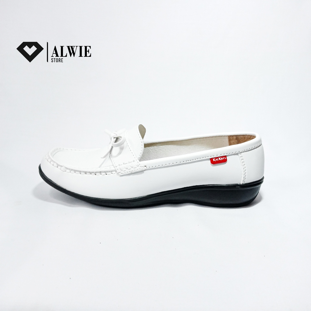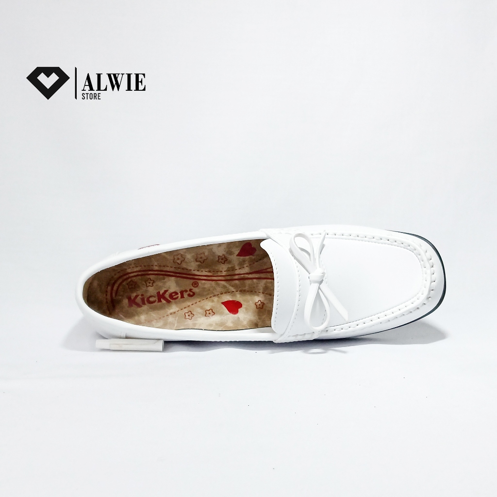 PREMIUM_Sepatu Pantofel Wanita Slip-On QG7014 | KICKERS | Putih Pita