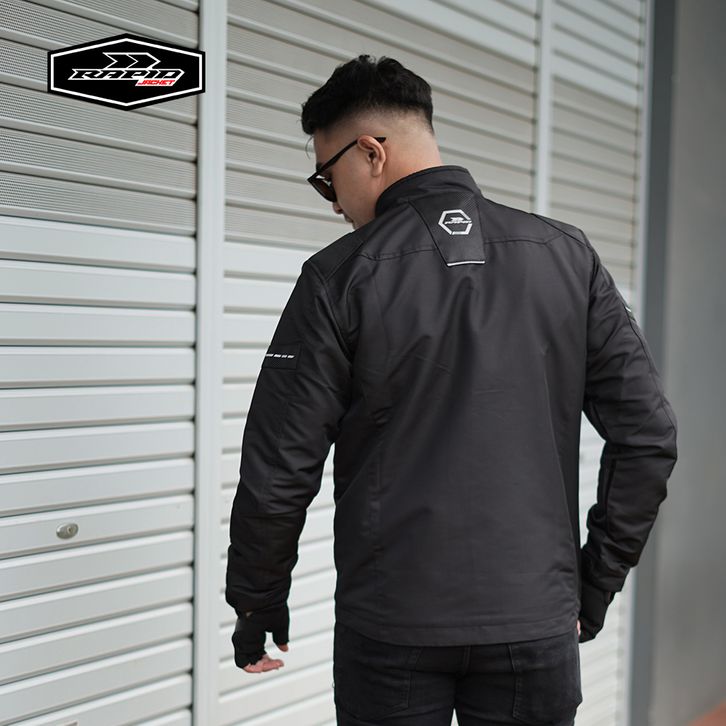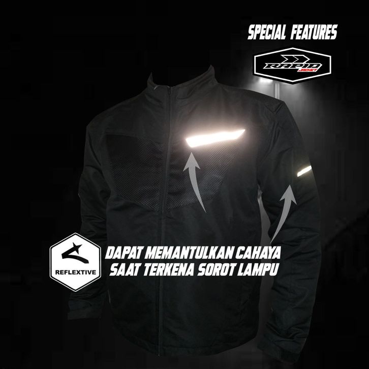 Jaket motor pria full black RAPID BLACKHAWK bahan parasit premium jacket reflektif kombinasi motif carbon