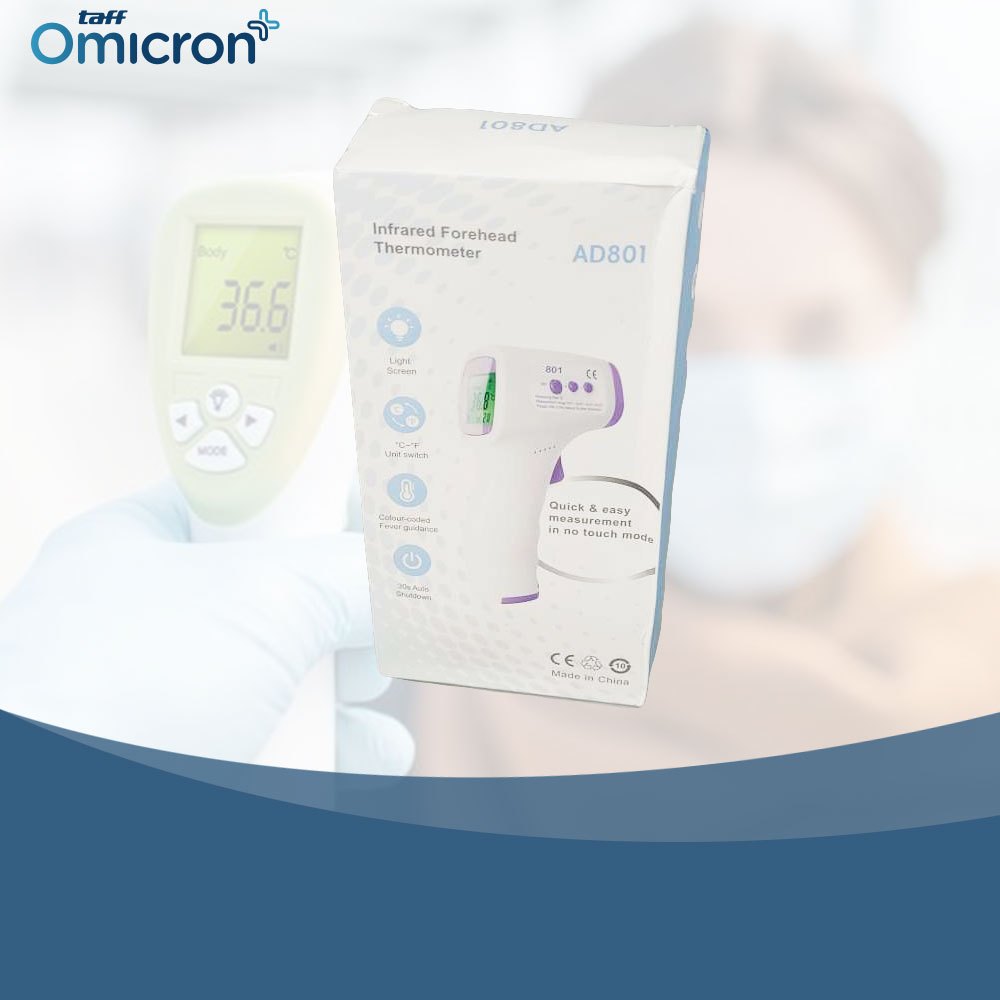 PROMO TaffOmicron Thermogun Thermometer Tembak Suhu Badan Infrared Non Contact AD801 Purple White Original - Termometer