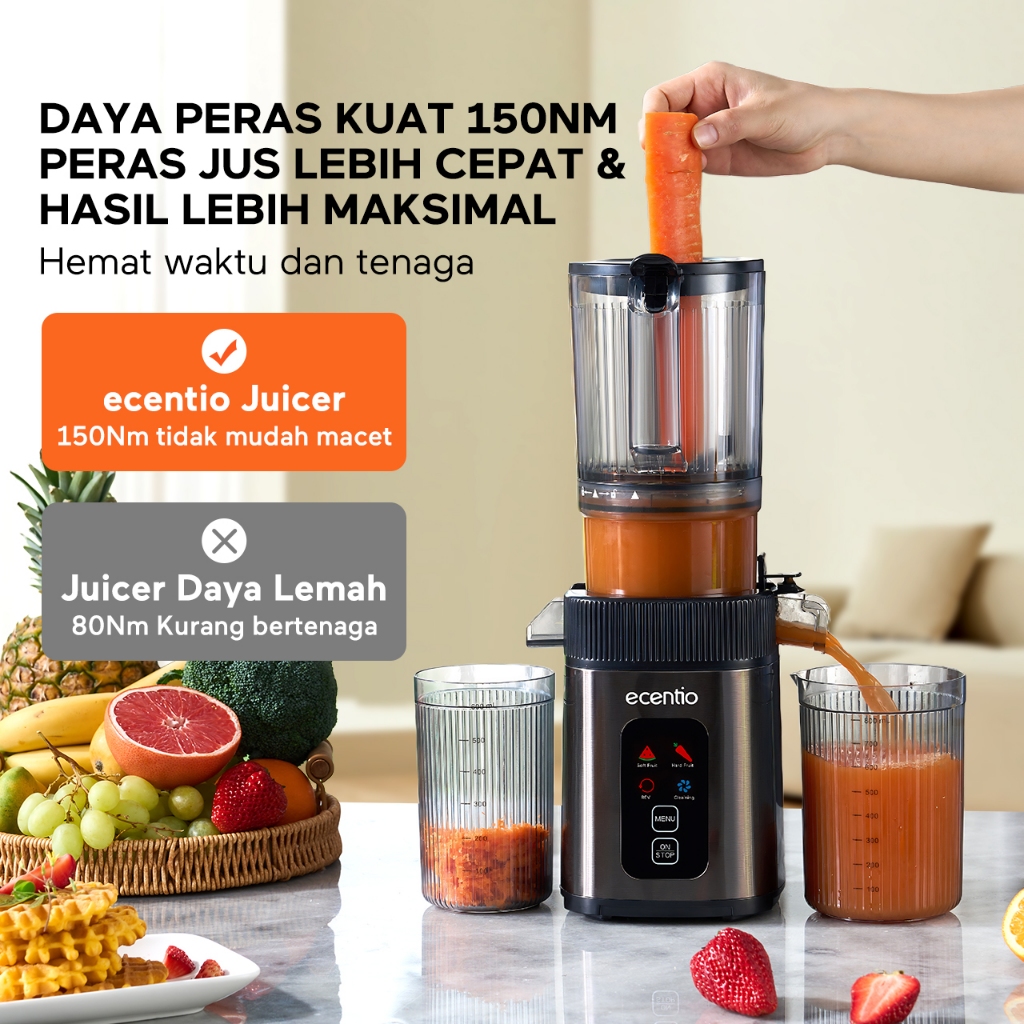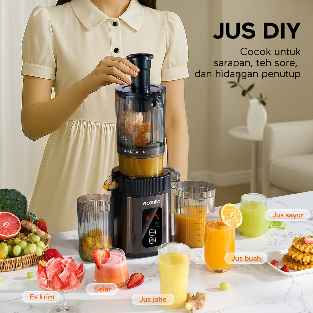 Ecentio Slow Juicer 1000ml Blender Jus Extra Big Mouth Juice Extractor Easy Filter-Free Low Watt Easy Clean Terlaris