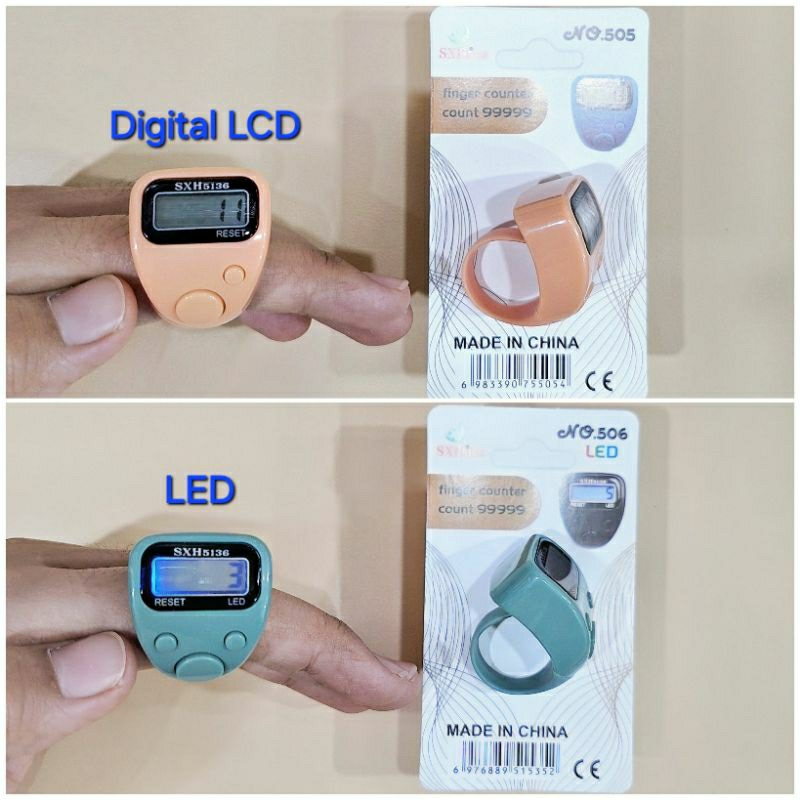 12pcs Tasbih Digital Mini Cincin LCD / LED Finger Counter Macam Warna Sxh Grosir