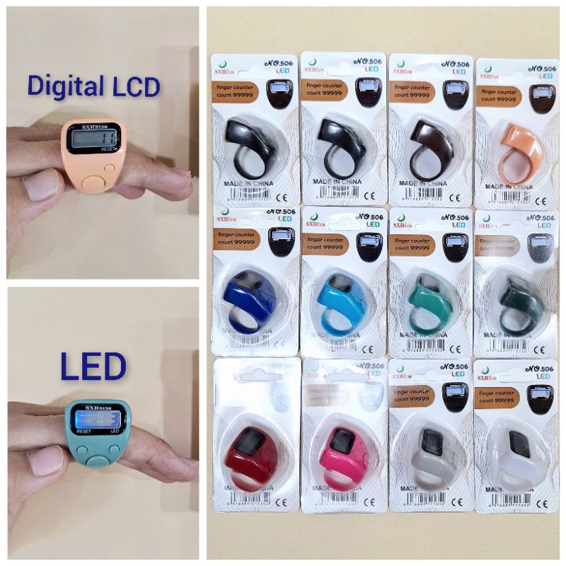 Tasbih Digital Cincin Mini LCD / LED Warna-Warni 12buah Belanja Souvenir Grosir