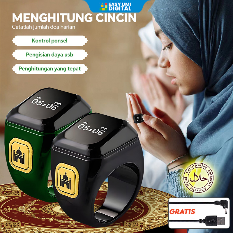 Muslim Zikr Ring Tasbih Digital Cincin LED Display Tasbih Smart Ring Penghitung Doa Elektronik Original Bluetooth Ring I