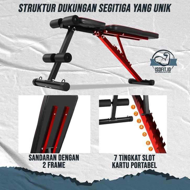 ISOFIT.ID ADJUSTABLE GYM BENCH PRESS / KURSI ALAT FITNESS RUMAH / ALAT LATIHAN KEBUGARAN GRATIS TALI RESISTENSI