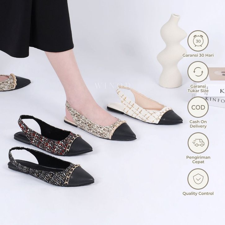 Sepatu Flatshoes WINOD Louis sepatu Kerja Model Tweed Flats Wanita Daily
