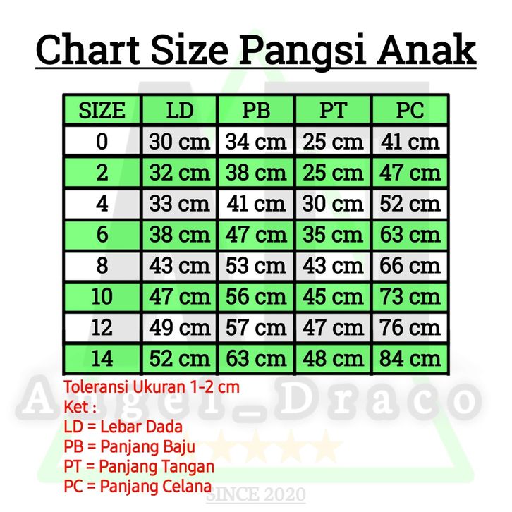 No.0 (0-1 Tahun), No.10 (9-10 Tahun), No.12 (11-12 Tahun), No.14 (13-15 Tahun), No.2 (1-2 Tahun), No.4 (3-4 Tahun), No.6 (5-6 Tahun), No.8 (7-8 Tahun)