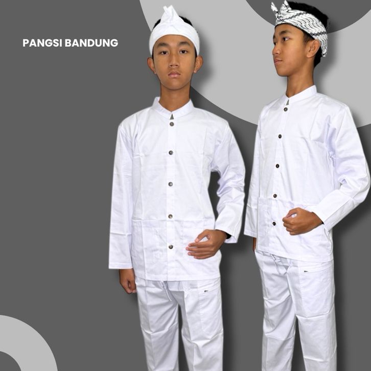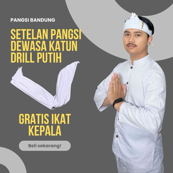 Setelan Pangsi Dewasa Katun Dril Gratis Ikat Kepala (Putih)