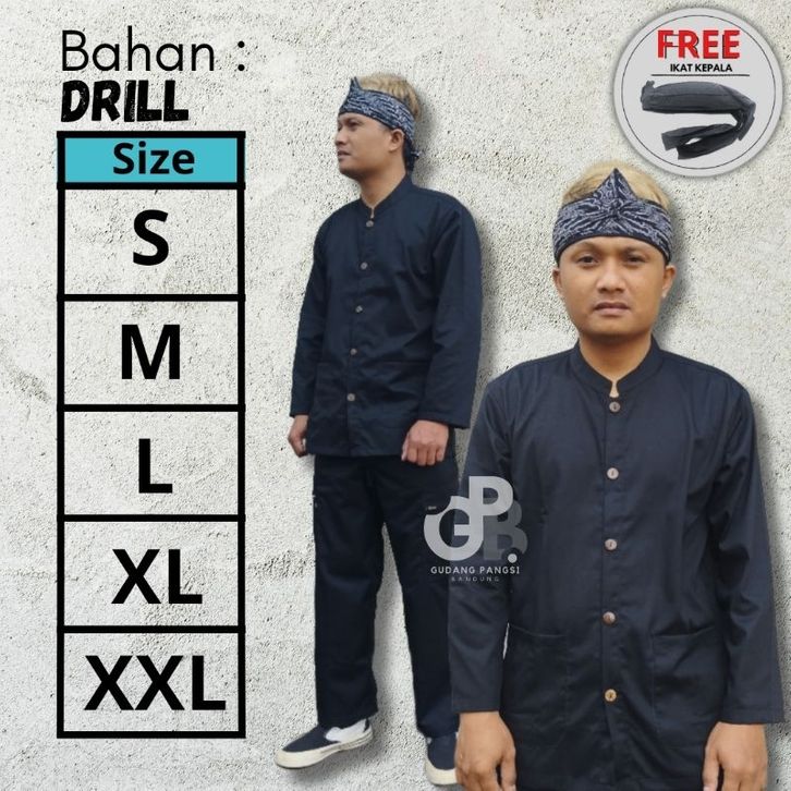 Setelan Pangsi Katun Drill Gratis Iket Kepala Pangsi Dewasa Terbaru Bahan Drill Premium
