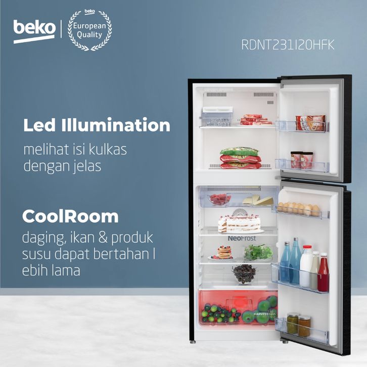Beko Kulkas 2 Pintu RDNT231I20 Kapasitas 230liter Non-Inverter EER 2Star Freezer -18C