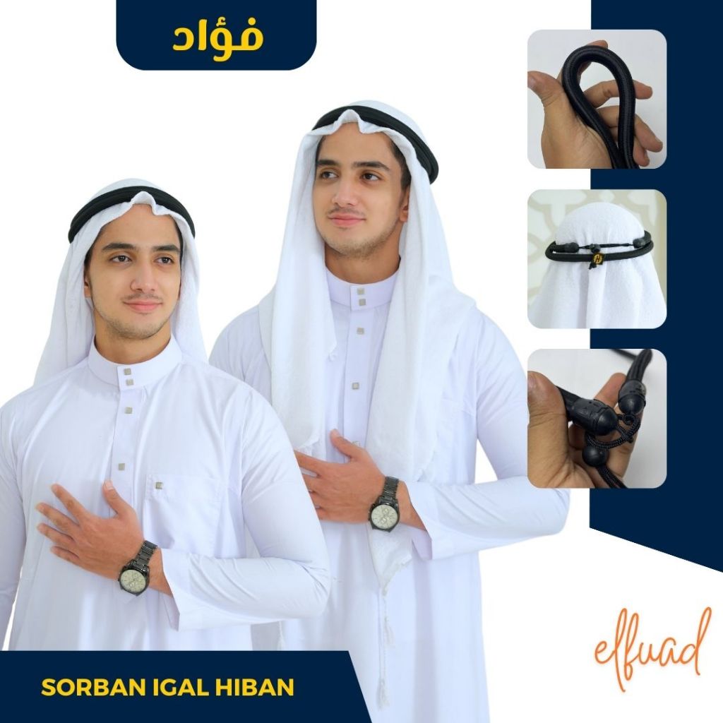 Elfuad Store Sorban Arab Igal Tali Peci Putih Dewasa Perlengkapan Haji dan Umroh Pria