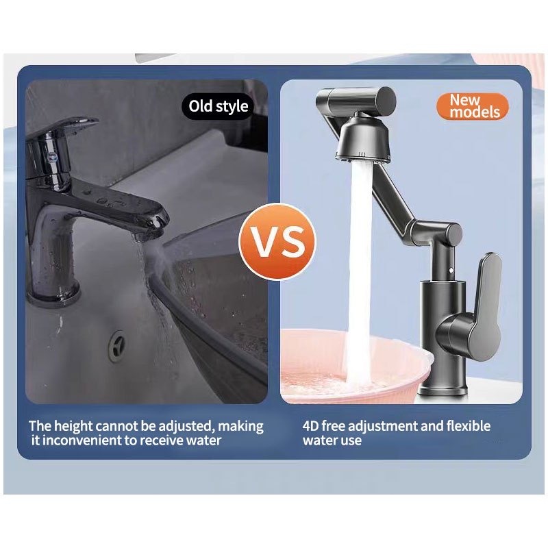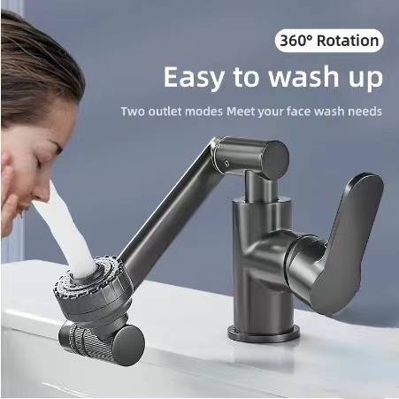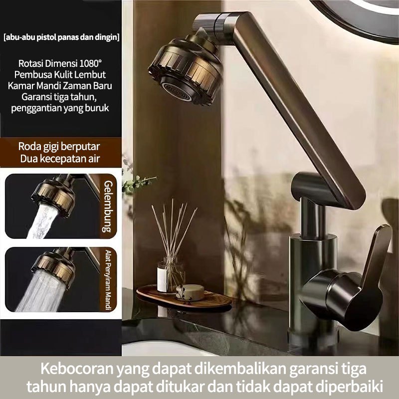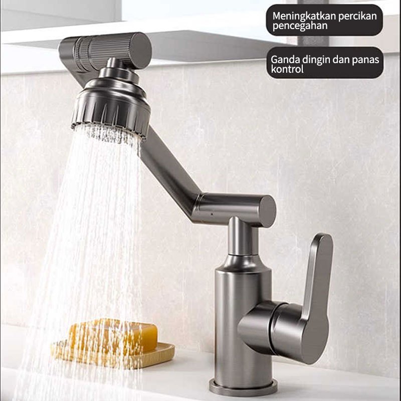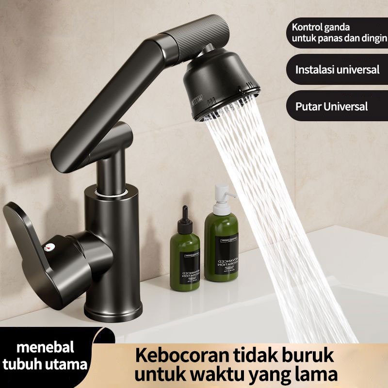 Keran Putar 360°Derajat Keran Air Panas & Dingin Keran 2 Jenis Mode Air Cerat Kran Wastafel Cuci Piring