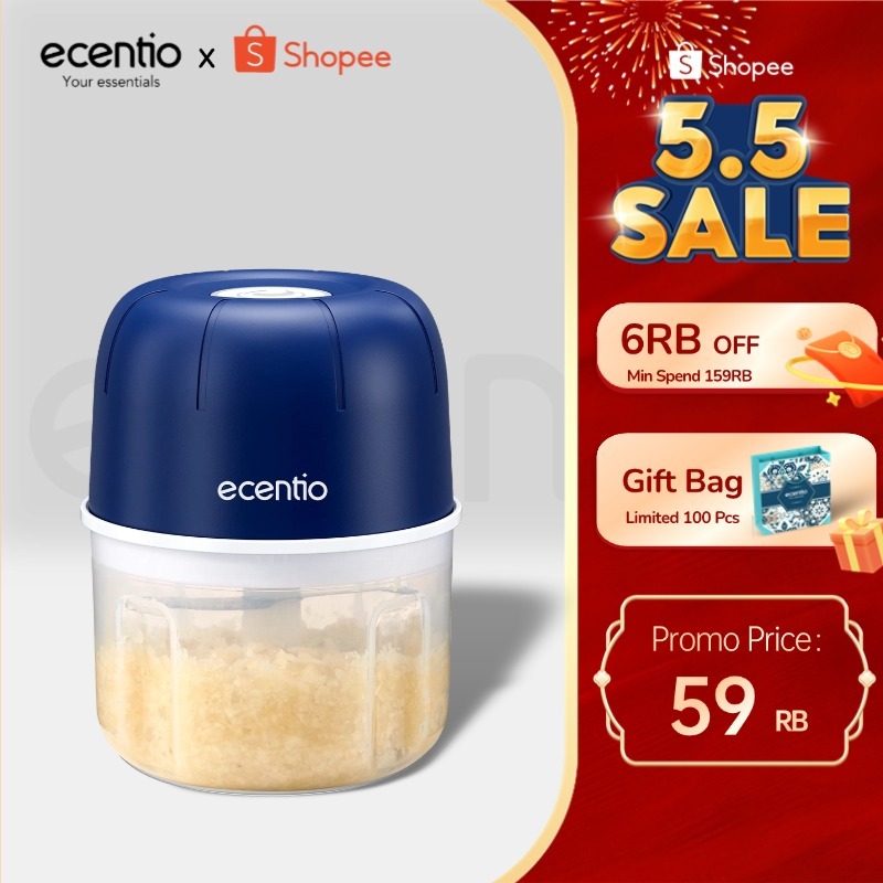 Chopper Mini Ecentio 250ml Portable Penggiling Bumbu Dapur Portable Penumbuk Bawang Biru Gelap