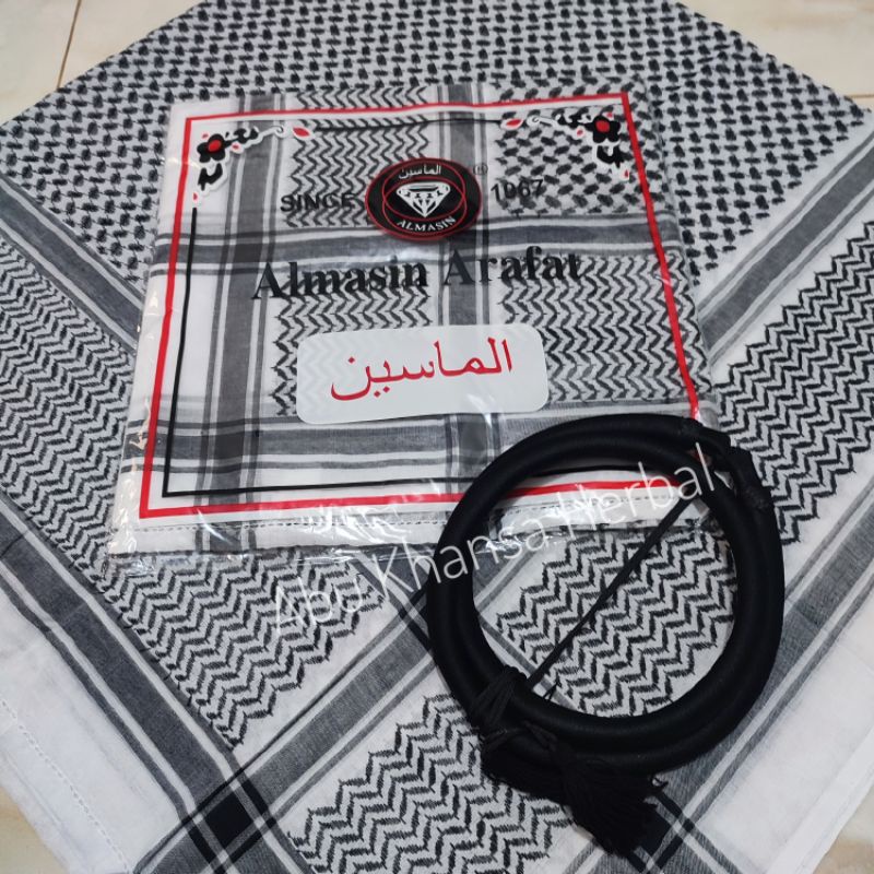 PAKET PREMIUM SORBAN ARAFAT MERAH PUTIH PLUS IGAL PENGIKAT KEPALA IMAMAH ARAB PLUS IGAL KEPALA SORBAN PALESTIN