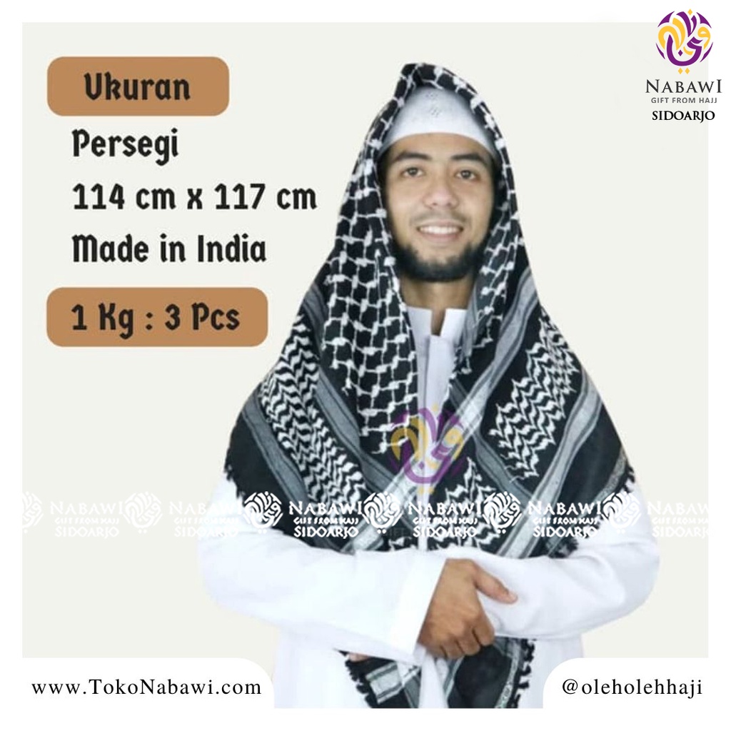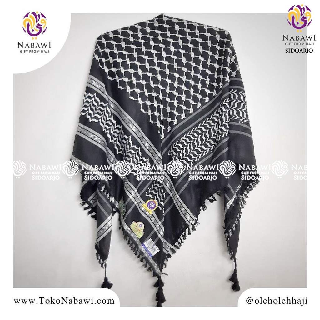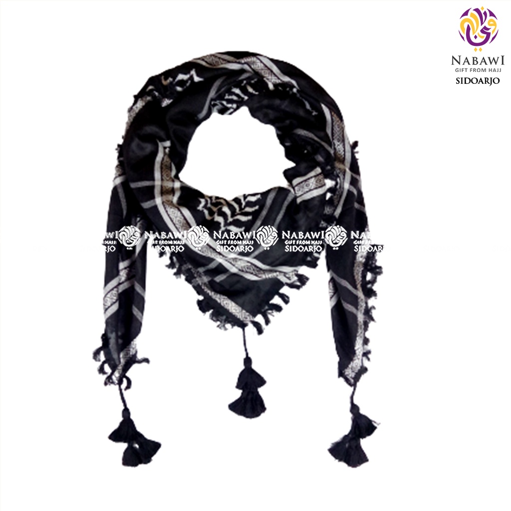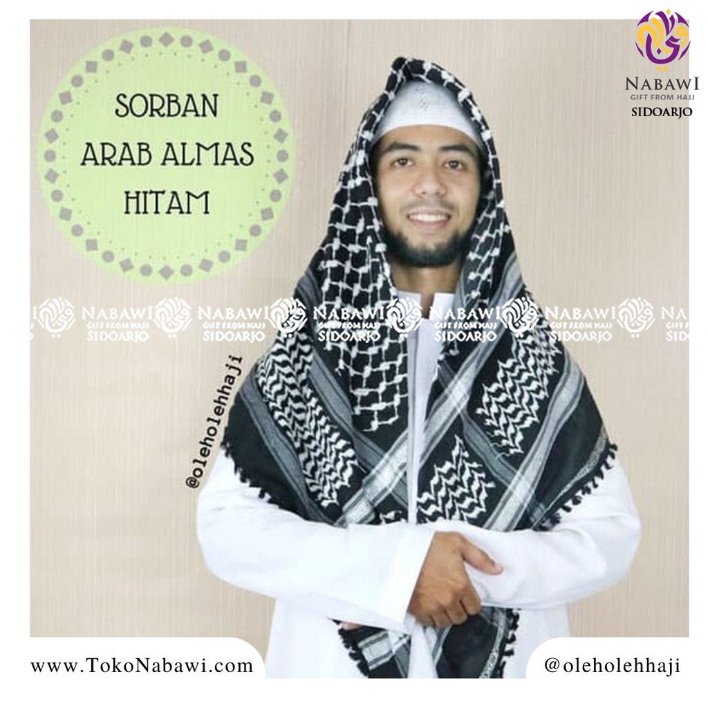 Sorban Almas Arafat Hitam Putih Warna/ Surban Arab / Oleh Oleh Haji dan Umroh - Nabawi Sidoarjo