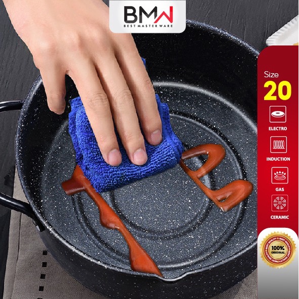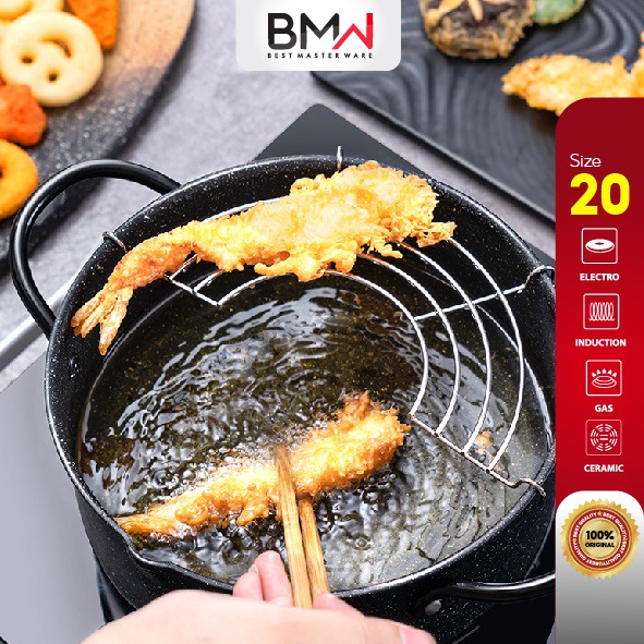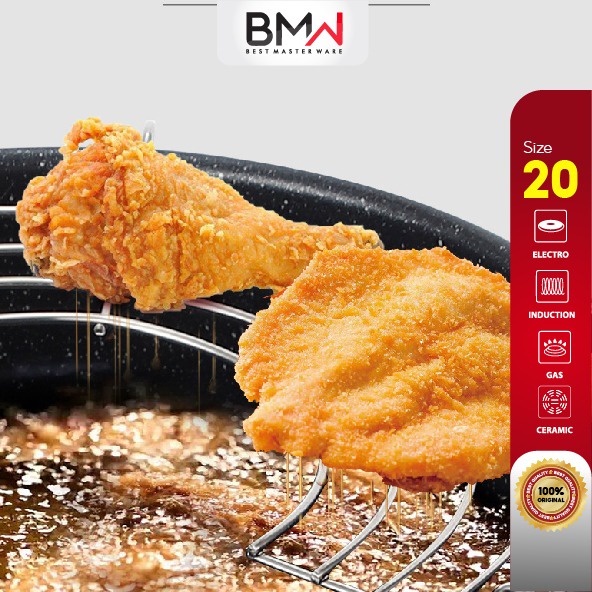 Roschel Deep Frying Wok Marble Non Stick Coating Double Bottom Induction Wajan Stainless Anti Karat + Rak Peniris Minyak
