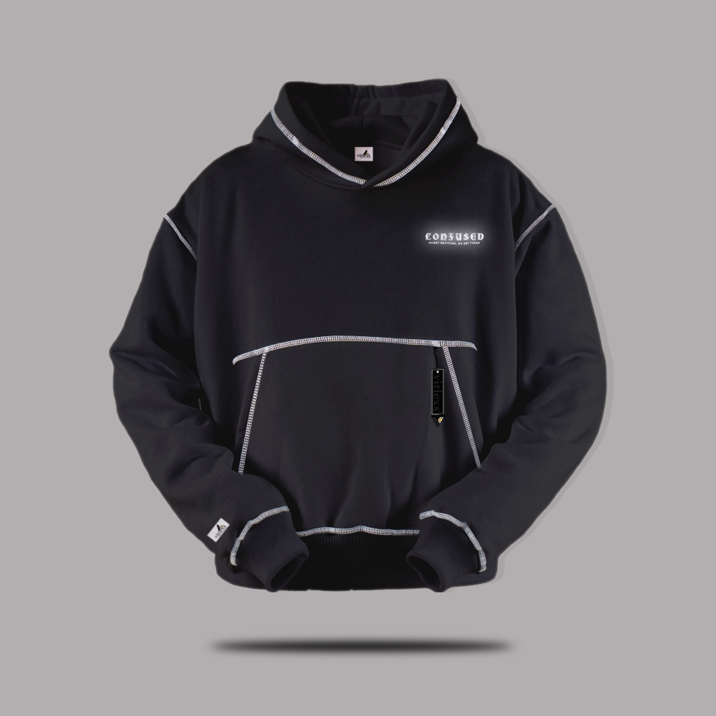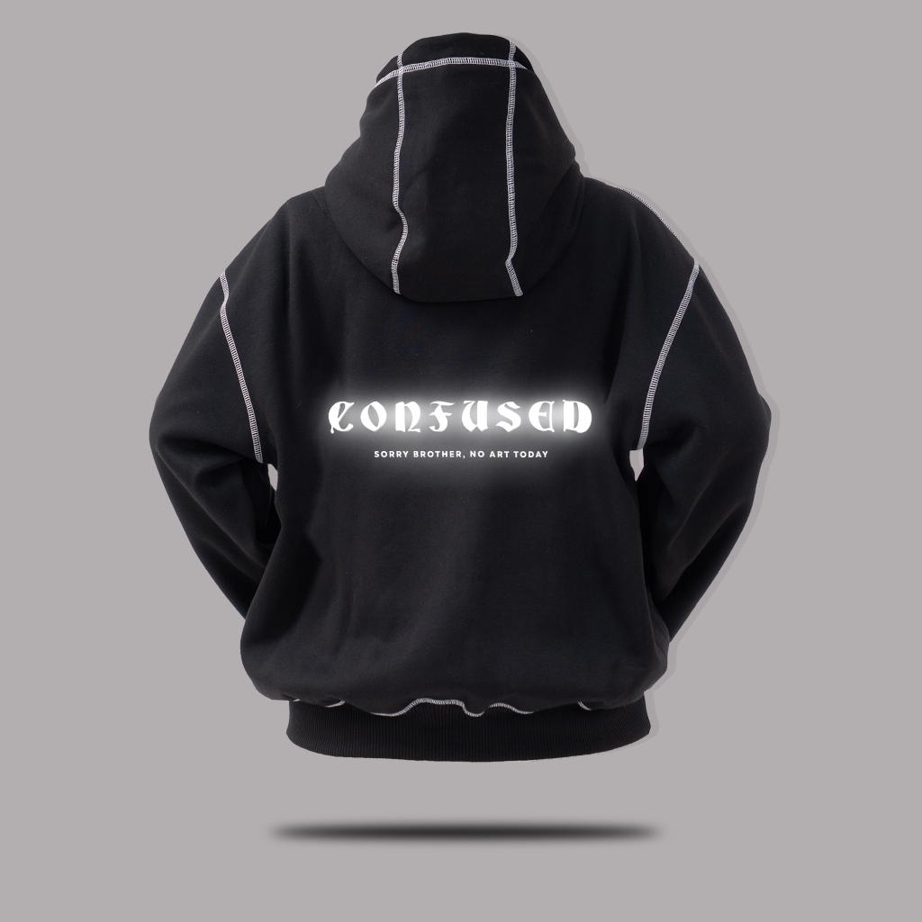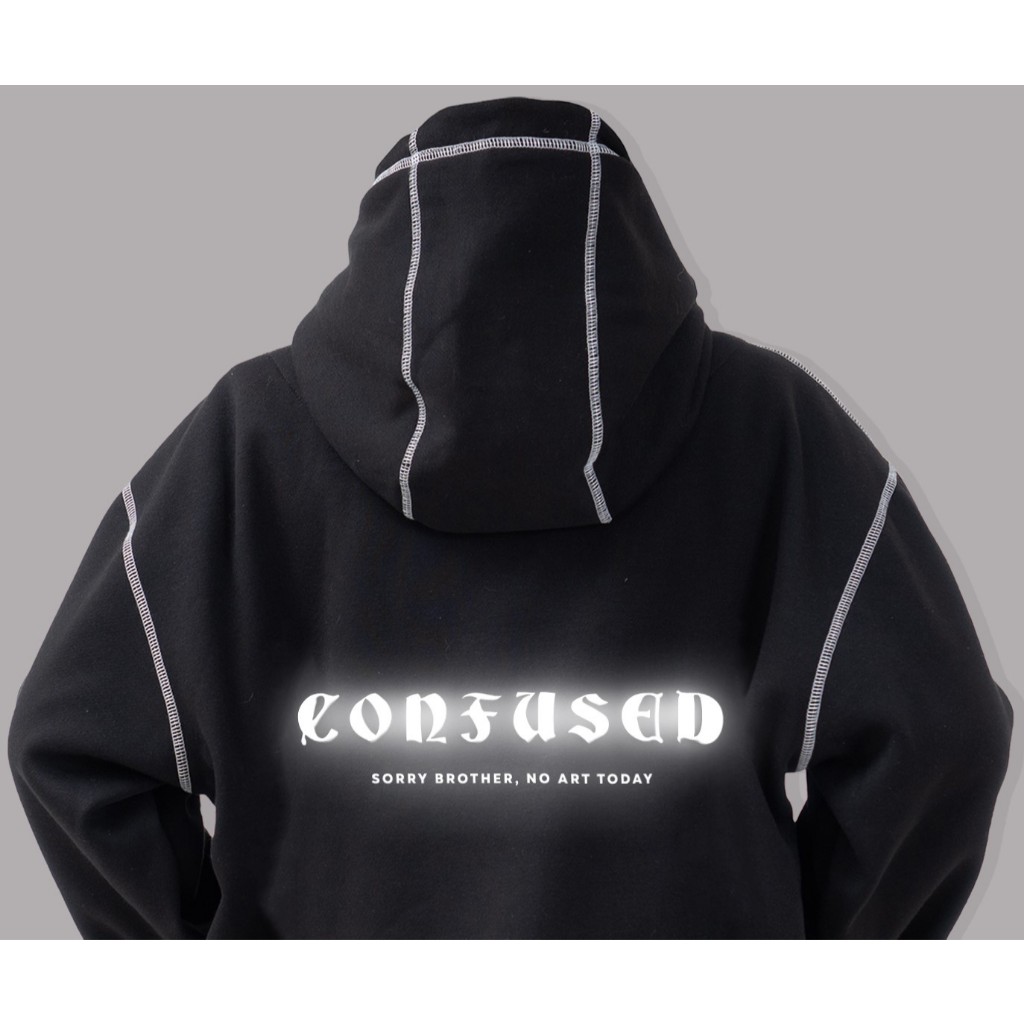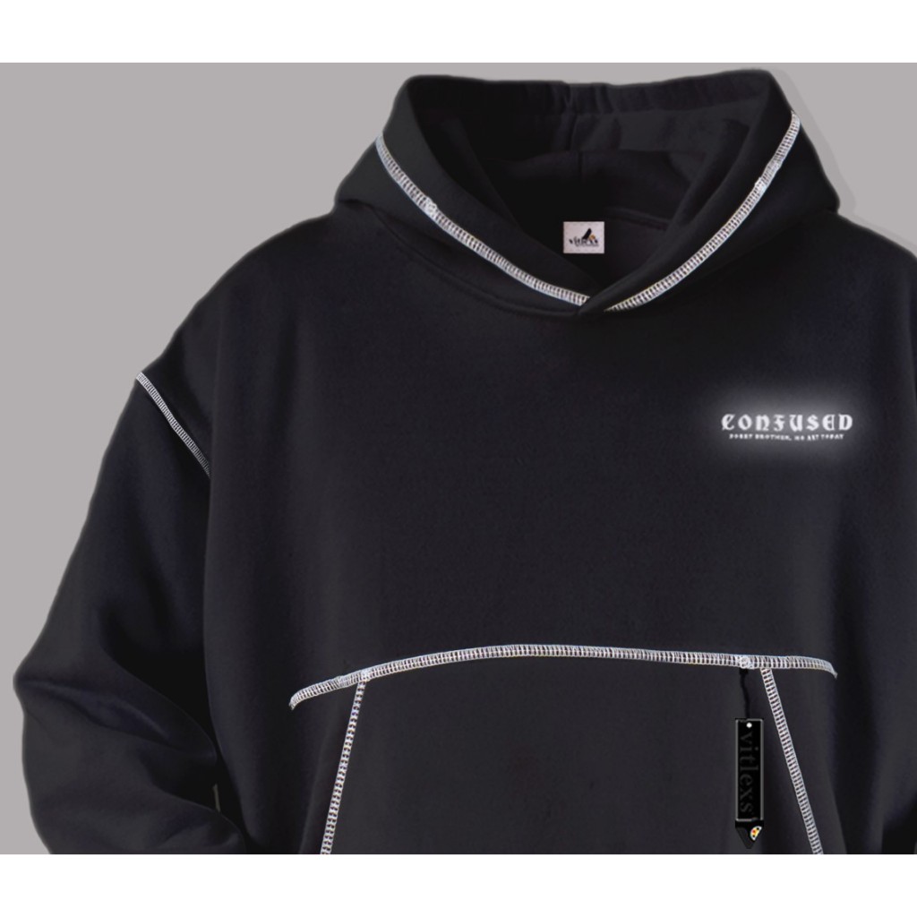 (FLASH SALE)Vitlexs - Sweater Hoodie Boxy Oversize Unisex Confused Menyala Warna HItam Hoodie Boxy Fleece Tebal