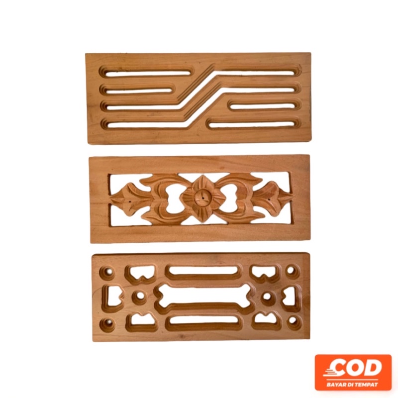 (10 x 25) Kepingan Loster Kayu Jati / Mahoni Dekorasi Dinding Bermotif Ventilasi Udara