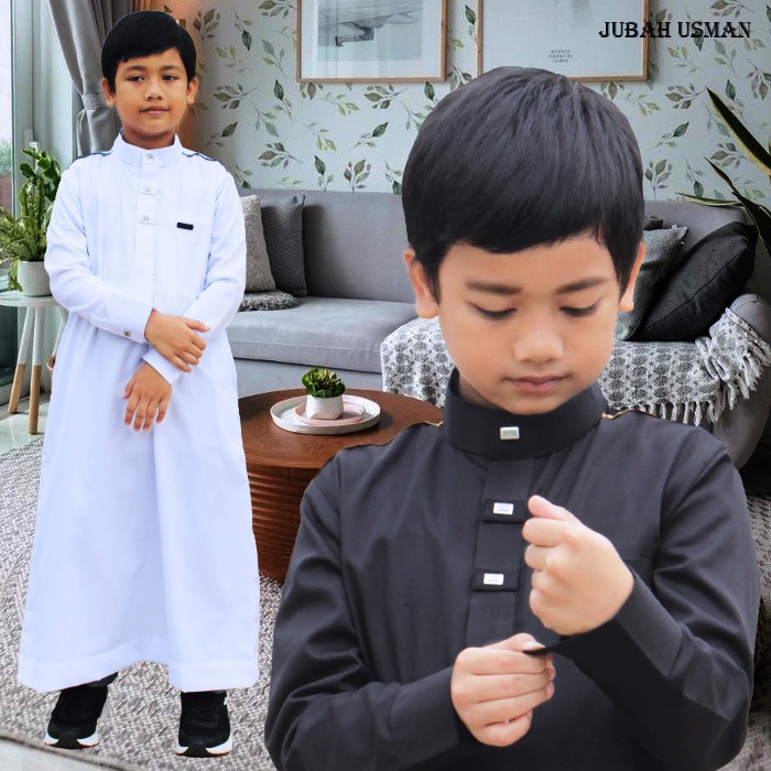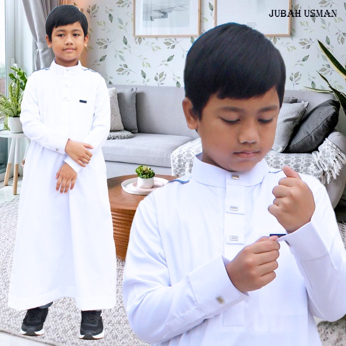 Jubah Gamis Anak Remaja Laki-Laki Lengan Panjang Putih Manset Katun Premium Usia 4-16 Tahun