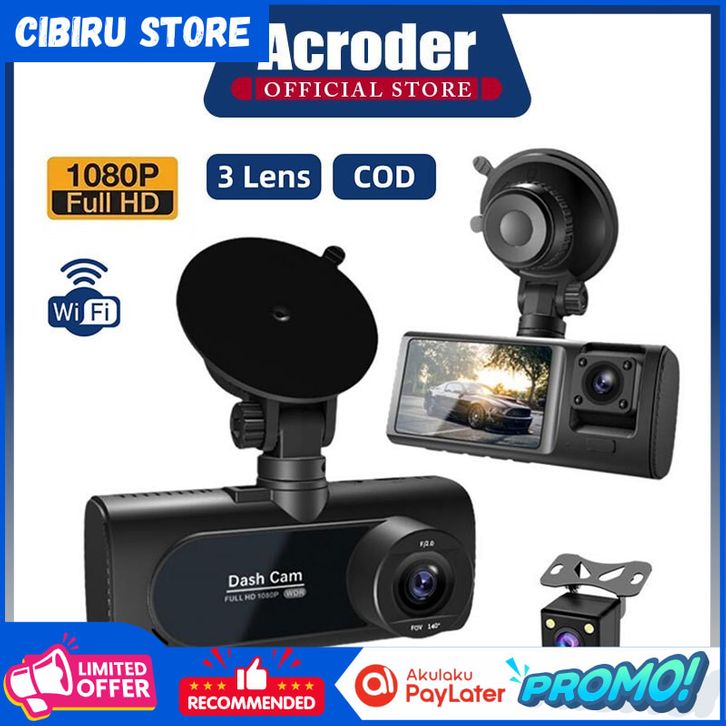 Acroder Dash Cam Wifi 1080P HD 3 Lens Night Vision 24 Hour Loop Recording Motion Detection