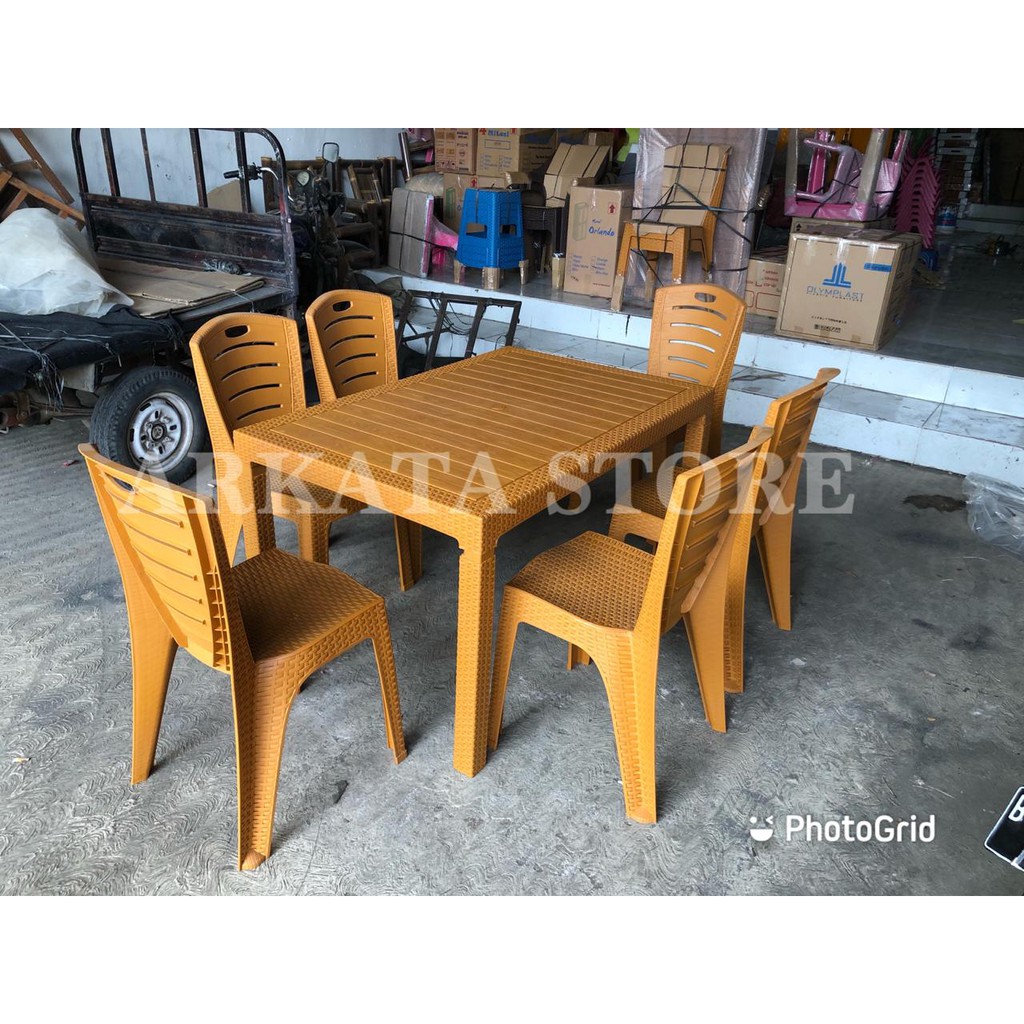 Meja Makan 1 Set meja Makan Plastik 120 ODT-R + 6 Kursi Olymplast Rotan OL 203 Original