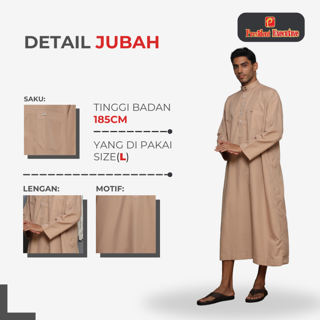 President Executive - Gamis Pria Jubah Laki Laki Polos Lengan Panjang Reguler Oblong Serie Viskin
