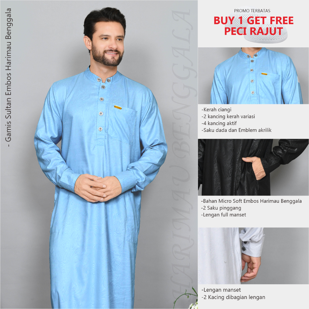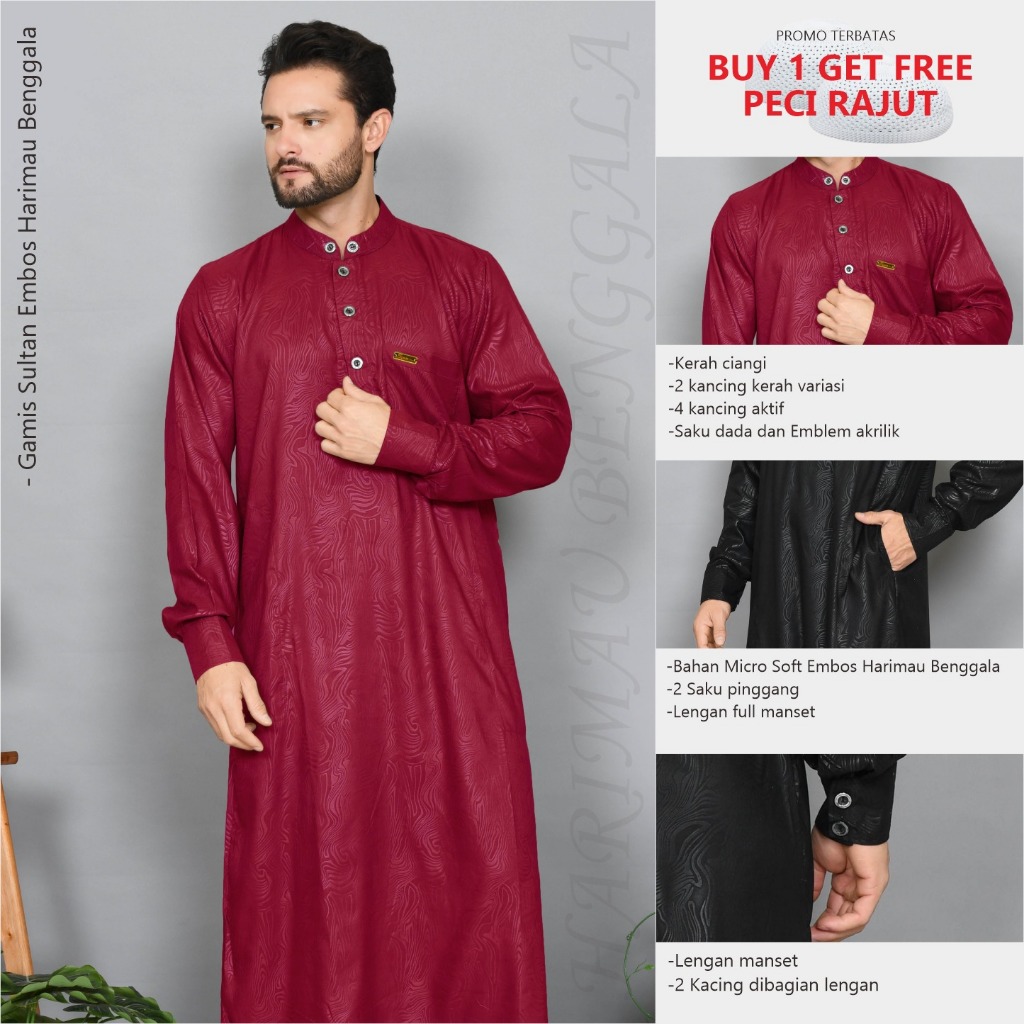 Jubah Sultan Dewasa Terbaru Embos Harimau Full Manset Bahan Lembut Gamis Lengan Panjang S M L XL XXL