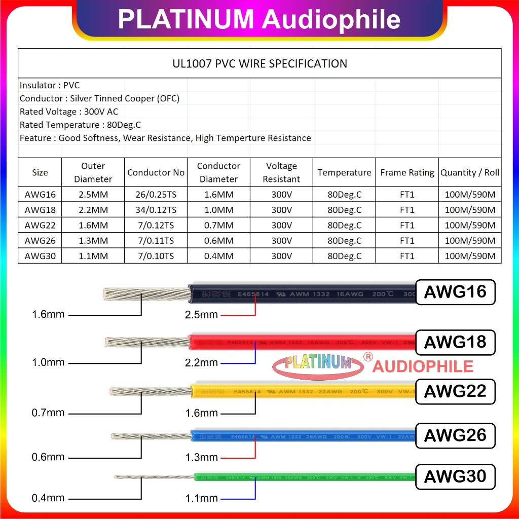 AWG-16, AWG-22, AWG-18, AWG-30, AWG-26