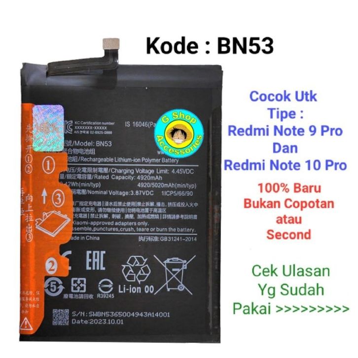 Baterai Redmi Note 9 Pro Note 10 Pro Redmi Note 9Pro Batre BN53 Batre Original Batrai